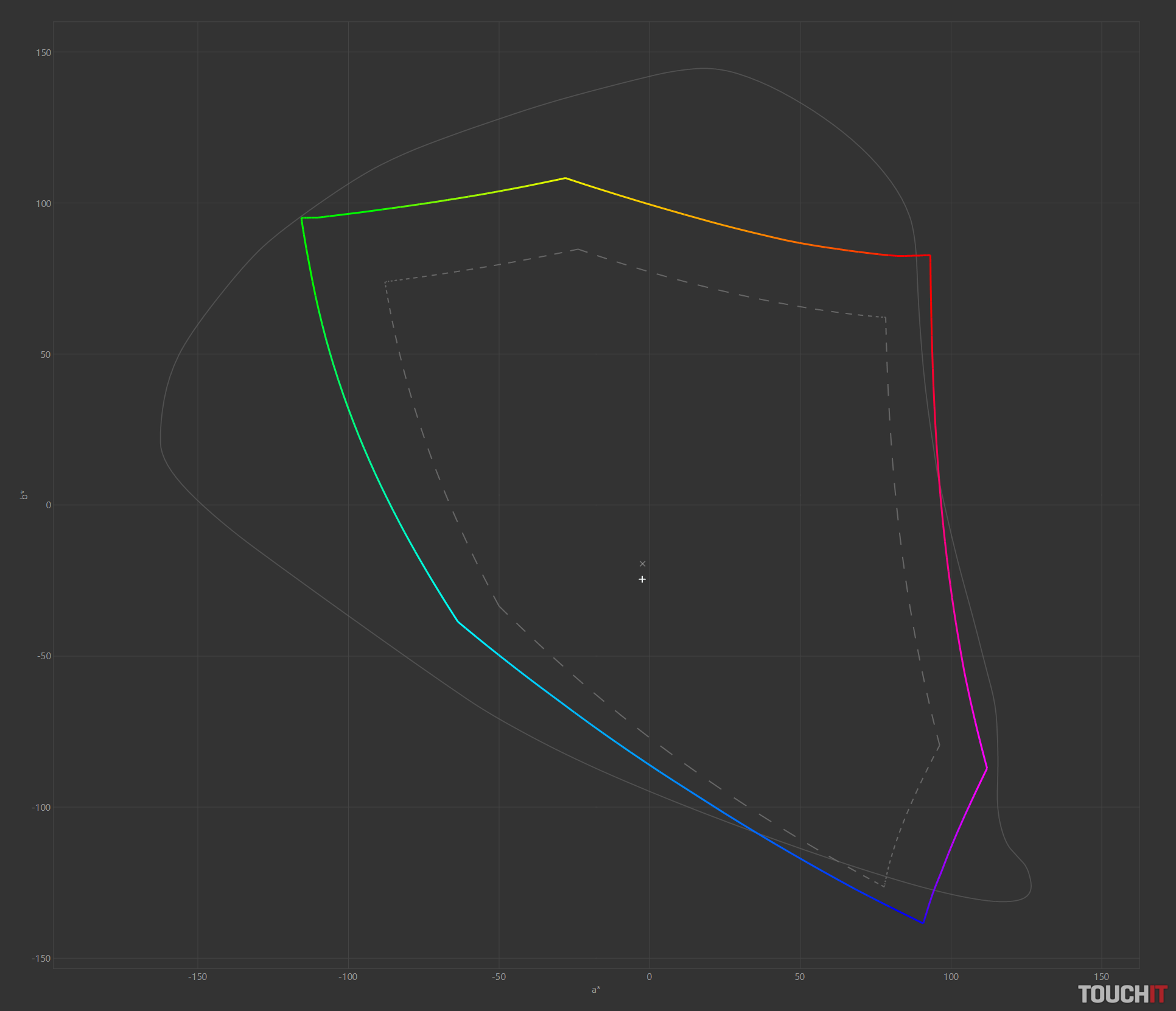 Pokrytie farebného priestoru | 97,3 % sRGB, 81,1 % Adobe RGB, 91 % DCI P3 |