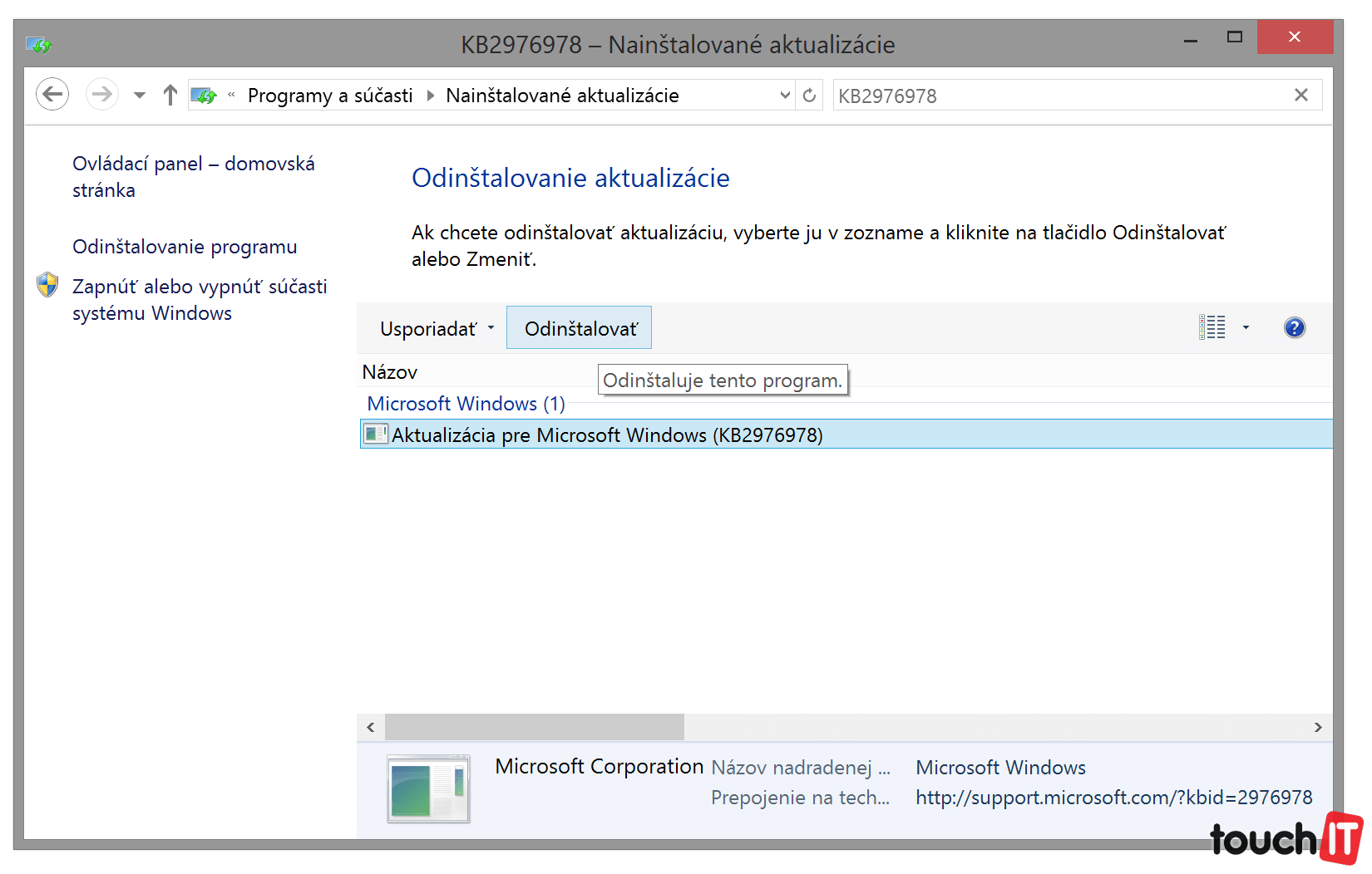 Postup je nasledujúci. Prejdite do ponuky Ovládací panel – Systém a zabezpečenie – Windows Update. Zvoľte možnosť Nainštalované aktualizácie a prostredníctvom vyhľadávacieho poľa nájdite vyššie uvedené aktualizácie. Postupne ich odinštalujte, pričom vždy zvoľte voľbu “Reštartovať neskôr” a počítač reštartuje až po odinštalovaní tej poslednej.