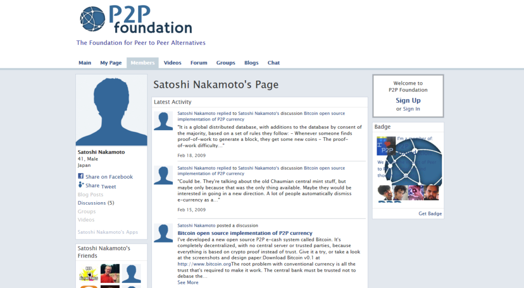Keď sa 1. novembra 2008 objavil na kryptografickom mailing liste mail od človeka s menom Satoši Nakamoto, len málokto z členov mu venoval extrémnu pozornosť.
