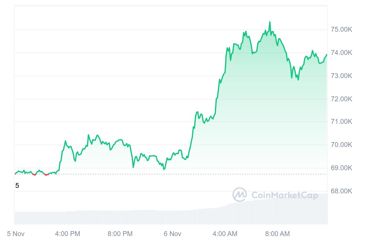 75 359 USD za 1 BTC no hodnota sa môže líšiť v závislosti na burze. Hybnou silou bolo víťazstvo Donalda Trumpa v amerických voľbách. Dosiahnutie novej výšky ATH je pozitívnou správou pre kryptomenových nadšencov. Na to, aby sme stúpali vyššie, bude treba splniť viacero faktorov. V časoch, keď sa už minimálne 2 roky hovorí o prichádzajúcej kríze, treba tlmiť nadšenie a zostať takpovediac „pri zemi“.