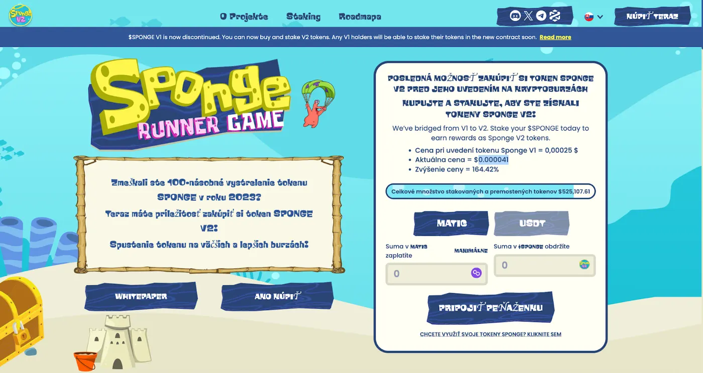 Meme coin Sponge je považovaný za jeden z najúspešnejších tokenov 2023. Svojim držiteľom priniesol 100-násobné výnosy a jeho trhová kapitalizácia presiahla 110 miliónov dolárov. No tvorcovia medzičasom prišli s novou verziou – Sponge V2, ktorá už stihla výsledky predošlého variantu prekonať.