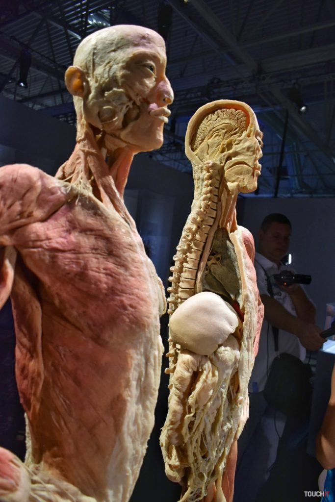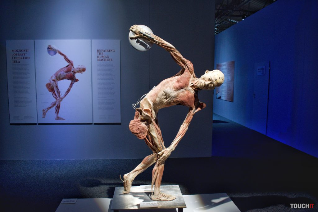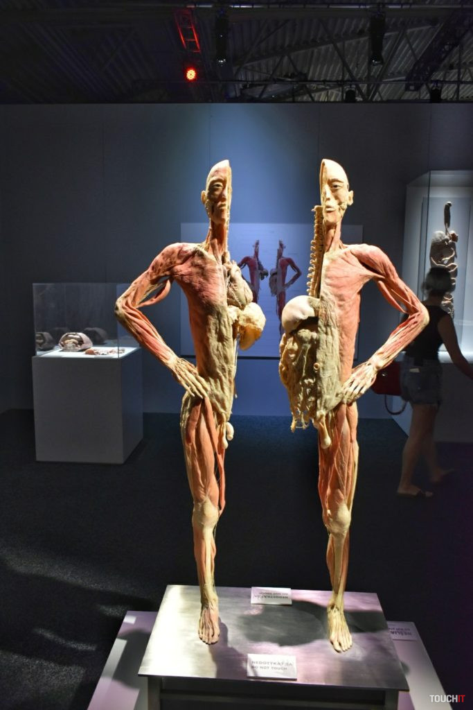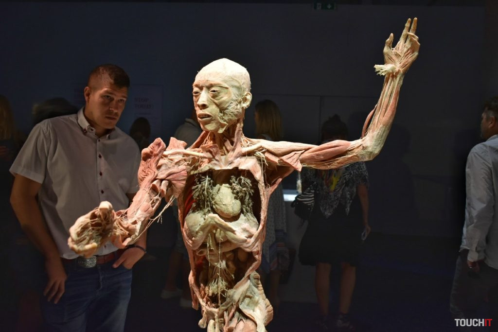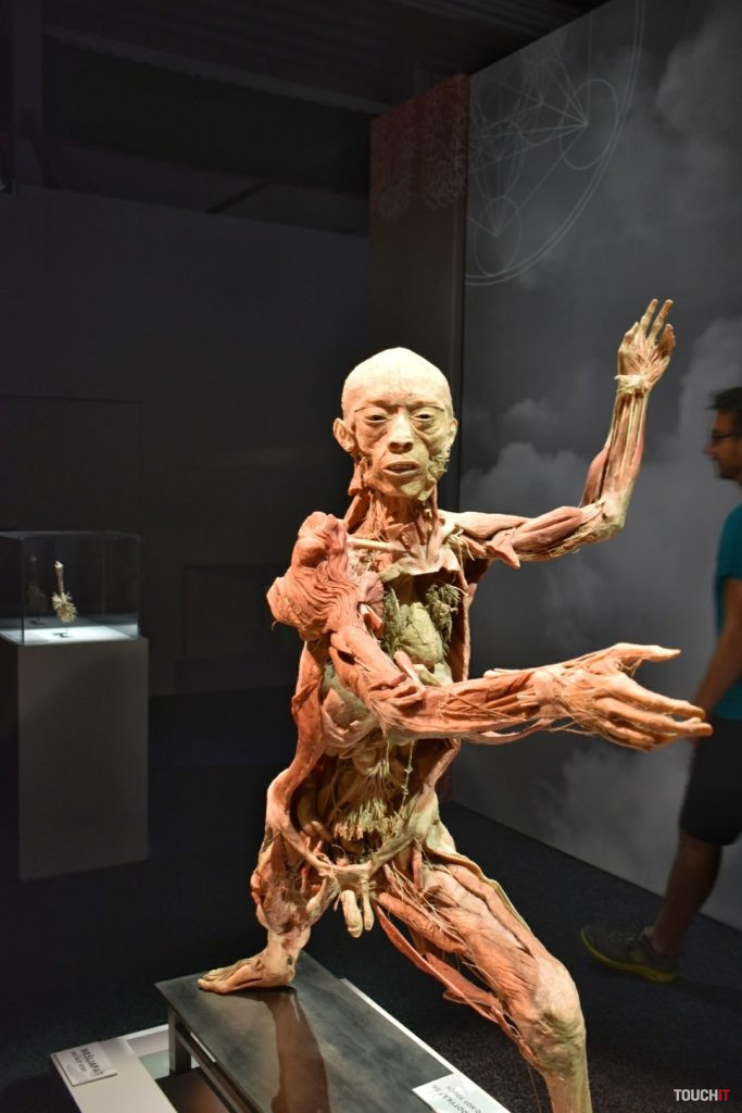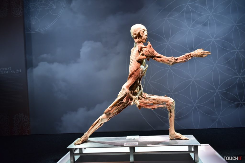 4000 m2 tiel a orgánov, každý deň až do januára budúceho roka Body The Exhibition pokrýva plochu 2000 m2 a obsahuje celkovo 21 celotelových exponátov a viac ako 200 menších exponátov. Po svete ju preváža 11 veľkých kamiónov. V Bratislave bude do 6. januára budúceho roka, pričom pre návštevníkov je k dispozícii každý deň v čase od 9:00 do 18:30. Cena lístka je 14 eur (pondelok – piatok), resp. 16 eur (víkend) pre dospelého a od 9 eur pre dieťa. Pokiaľ zvažujete návštevu tejto výstavy, vedzte, že je to jedna z výstav, ktoré sú tak dobré / zlé, aké si ich spravíte. Jej gro netvoria samotné plastinované tela, hoci tie vyvolávajú v médiách a na fotkách najväčšie haló. Nás výstava zaujala najmä detailmi, ktoré tieto telá zobrazujú a pokiaľ vás aspoň trochu zaujíma stavba ľudského tela, Body The Exhibition pravdepodobne splní svoj účel aj vo vašom prípade. Príjemným bonusom je odborný personál – medici, ktorí sú k dispozícii v každej sekcii a sú pripravení zodpovedať vaše otázky. Ich prítomnosť a rozhovory s nimi môžu dať celej výstave úplne iný rozmer a v kombinácii s odbornými textami, ktoré vysvetľujú fungovanie a prínos jednotlivých technológií ľudského tela, tak môže ísť skutočne o vzdelávaciu výstavu. Záleží iba na vás. Fotogaléria:Fotiť sme mohli iba v prvých dvoch sekciách výstavy. Celotelové exponáty priťahujú najväčšiu pozornosť