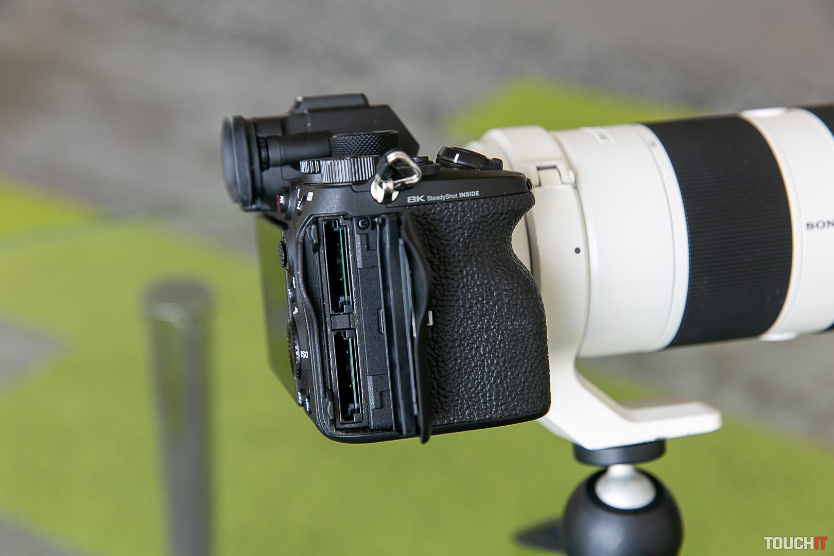 Na tele tohto fotoaparátu nájdete jednak dve šachty, kam umiestnite karty SD UHS II ale aj veľmi rýchle (a oveľa drahšie) karty CF Express. Karta CF Express s kapacitou 128 GB stojí okolo 100 eur. Ak to ale myslíte s rýchlosťou vážne a rozhodli ste sa investovať do tohto fotoaparátu, potom je čas takéto karty si zaobstarať. Ak budete používať len ľahko dostupné SD karty, nevyužijete potenciál tohto fotoaparátu naplno.HEIFF formát je investíciou do budúcnosti