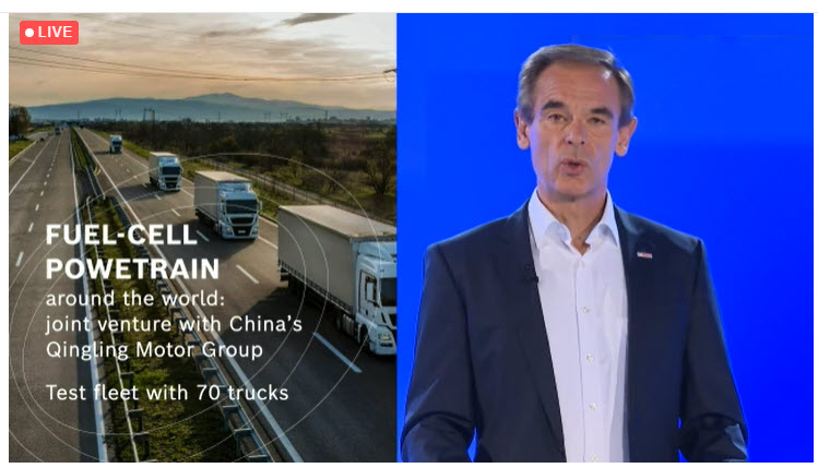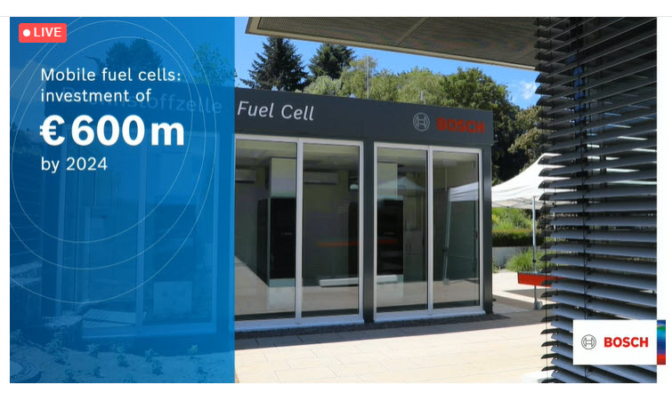 Trh so zeleným vodíkom bude mať v roku 2030 v EU hodnotu až 40 miliárd eur s ročnou mierou rastu až 65 %. Palivové články totiž premieňajú vodík na elektrinu a sú tak zdrojom pohybu. Bosch vyvíja v tejto súvislosti stacionárne aj mobilné riešenie palivových článkov. V rokoch 2021 až 2024 plánuje Bosch do palivových článkov investovať viac ako jednu miliardu eur. „Bosch je už na H2 pripravený,“ prehlásil na tlačovke sugestívne Denner.