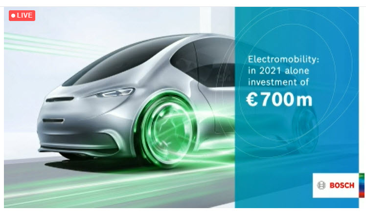 „Bosch zvládol prvý rok koronavírusovej pandémie celkom dobre,“ prehlásil Dr. Volkmar Denner, predseda predstavenstva spoločnosti Robert Bosch GmbH. Hnacou silou je elektromobilita, pričom firma pod jeho vedením v tejto oblasti vynakladá obrovské počiatočné investície. Len za tento rok vynaloží ešte ďalších 700 miliónov eur. Počiatočné investície firmy do elektromobility tak doteraz predstavujú celkom päť miliárd eur. Zároveň však rastie obrat Boschu v oblasti komponentov elektrického hnacieho ústrojenstva dvakrát rýchlejšie ako celý trh.