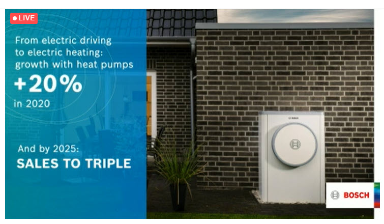 Do boja proti postupujúcej zmene klímy nastupuje elektrifikácia a zelený vodík. Bosch verí, že elektrifikácia otvára nové príležitosti a to hneď v niekoľkých oblastiach podnikania. Hlavne v podobe pohonov v automobiloch, ale aj pri modernom vykurovaní budov. Hýbateľmi zmien sú klesajúce náklady na batériu a sprísnené emisné normy, navrhnuté tak, aby splňovali podmienky ochrany klímy. Pri vykurovaní ide o lepšie využitie tepelných čerpadiel a obnoviteľných zdrojov.