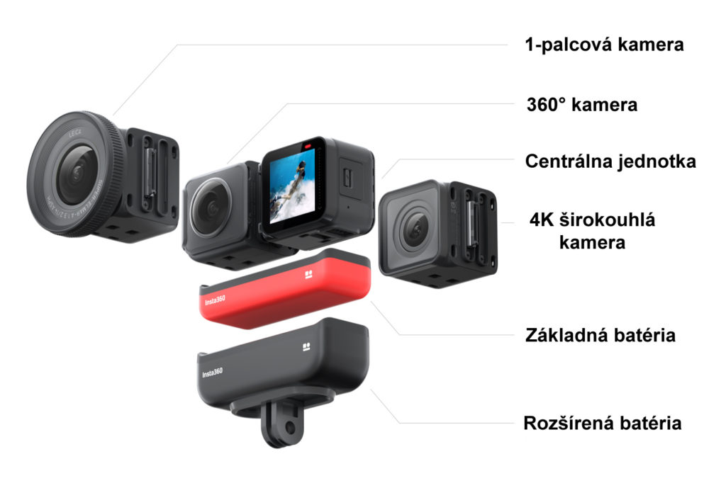 My sme testovali akčnú kameru Insta360 One R s jednopalcovou kamerou, ktorá je na prvý pohľad zaujímavá svojou modulárnou architektúrou. V dodávke sme pritom našli tri hlavné súčasti: centrálnu jednotku s 1,3-palcovým displejom, samotnú kameru s jednopalcovým snímačom a obe tieto časti sa šikovne zasúvajú do batérie (1190 mAh). K tomu bola ešte klietka, ktorá umožňuje pripevniť spojenú kameru do bežných držiakov a chráni vlastné moduly pred poškodením. Dodávka bola v praktickom puzdre aj s držiakom kompatibilným so systémom GoPro.