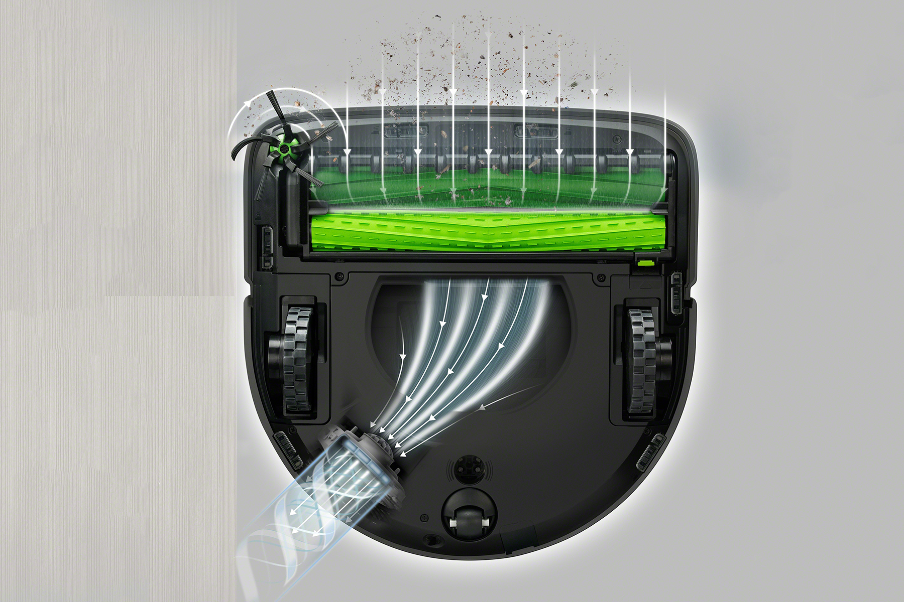 Robotický vysávač Roomba® s9+ s automatickou vyprázdňovacou stanicou Clean Base™ prináša používateľovi doposiaľ najhlbšie čistenie, a to vďaka pokročilému 3D senzoru, novému výkonnému systému čistenia a technológii PerfectEdge®, ktorá zahŕňa 30% širšie gumené kefy na rôzne povrchy a špeciálne navrhnutú kútovú kefku. Každá z kief má gumené lamely, ktoré ostávajú v stálom kontakte s rôznymi povrchmi – od pevných podláh až po koberce. Sú flexibilné a prispôsobujú sa povrchu tak, aby zachytili všetko, od malých čiastočiek, ako napríklad prach a špina, až po vlasy a veľké nečistoty. Špeciálne navrhnutá kútová kefka má päť ramien, ktoré dokážu strhnúť špinu a nečistoty z hĺbky kútov a pozdĺž stien a nasmerujú ich do trasy robota, aby boli povysávané.