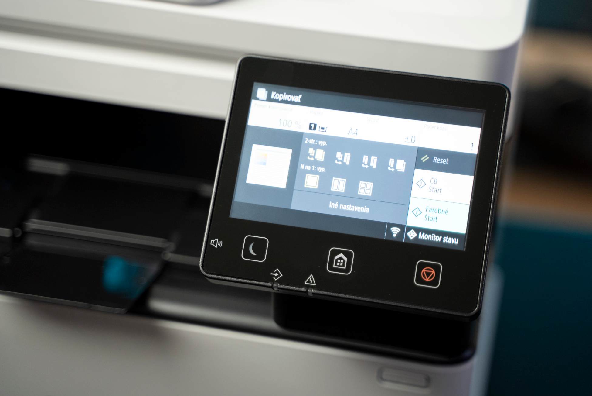 Poteší aj informačná hodnota displeja, ktorý vždy informuje o tom, aká úloha sa vykonáva. Pri tlači dokumentu je napríklad vidieť aj názov konkrétnej úlohy, a tak si ľahko odsledujete, či sa tlačí váš dokument. Informácie o tom, ako je zariadenie zapojené, získate niekoľkými ťuknutiami na displej a všetko je v prehľadnej forme. Zistiť IP adresu zariadenia nebude problém.