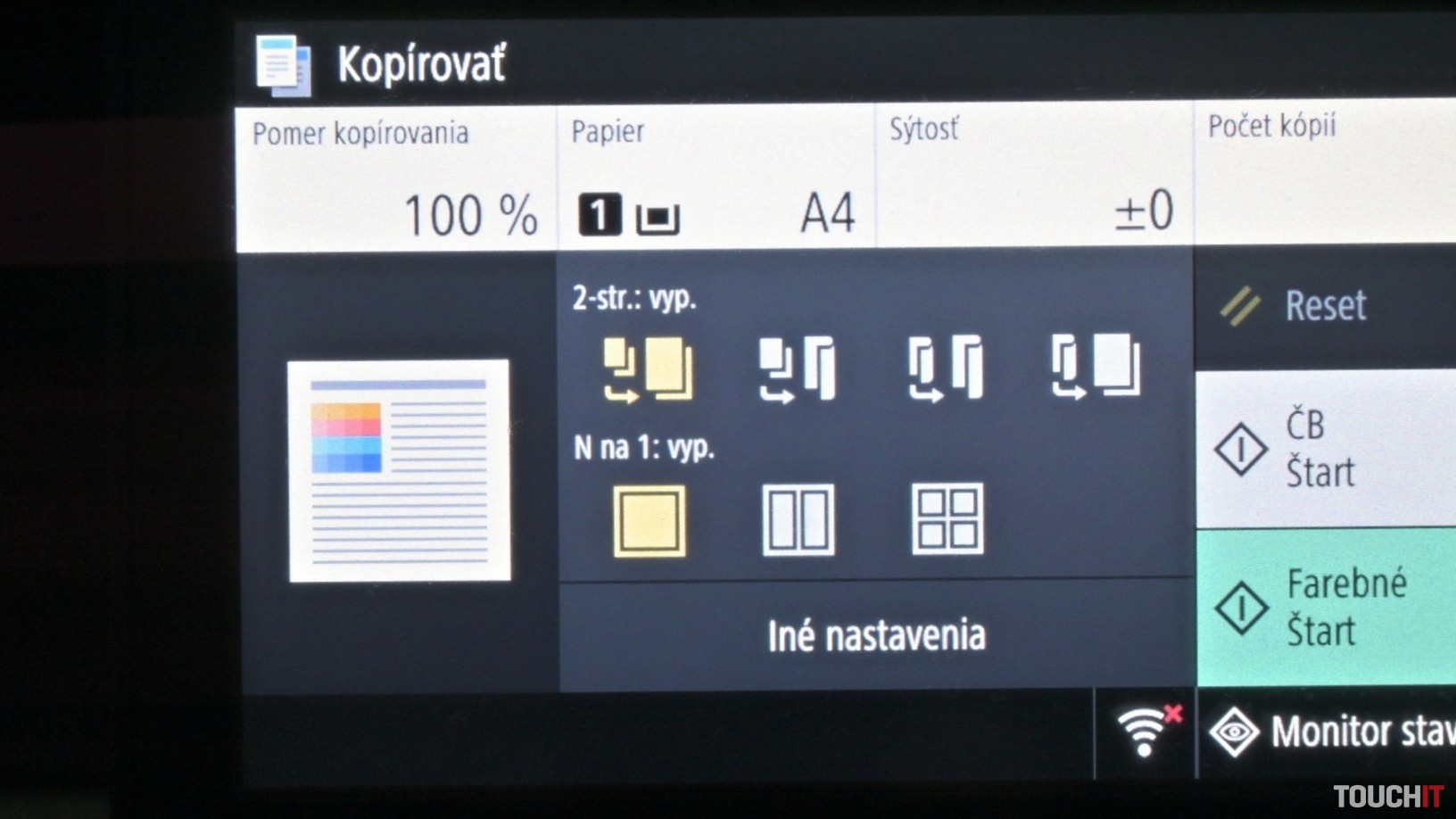 Multifunkčné zariadenie si kupujete nielen kvôli tomu, že okrem tlače umožňuje aj skenovanie. Stále je tu doba, kedy je kopírovanie jednou zo základných činností. Tu sa musíte spoľahnúť naozaj na rozhranie výrobcu a to ako ho navrhol a čo všetko vám dá k dispozícii. Je totiž veľmi jednoduché skopírovať strany tak povediac 1:1.