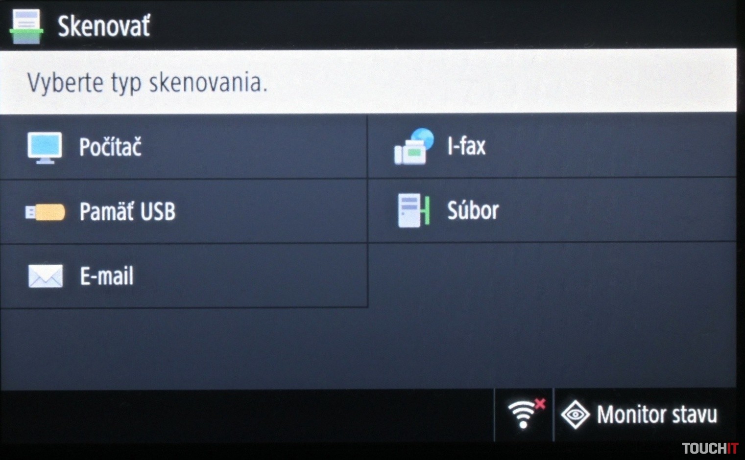 Nezáleží na tom či tlačíte alebo skenujete prostredníctvom mobilného telefónu alebo do mobilného telefónu, prípadne na to použijete klasický počítač. Mnohí používatelia chcú svoje úlohy skenovať priamo na flash disk alebo si ich poslať e mailom. Aj preto je zariadenie vybavené dotykovým displejom, ktoré poskytne kompletné nastavenie úloh priamo v jeho rozhraní. Na množstvo činností tak nebudete potrebovať ani počítač, ani smartfón so špecializovanou aplikáciou, hoci tá je dostupná.