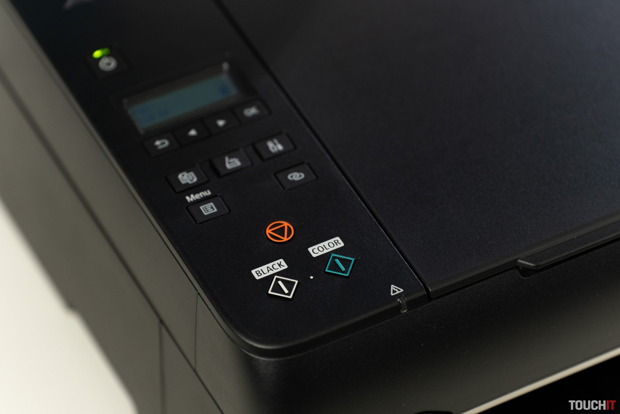 Všetko, čo treba nastaviť, zvládnete na dvojriadkovom displeji. Univerzálnych vecí je tu viac. Napríklad podávač papiera. Ten je na zadnej strane, čím dochádza k ceste papiera vo forme písmena L. Použitie tvrdších papierov nebude mechanizmu robiť problémy, ako napríklad pri umiestňovaní v spodnej časti, kde musí opísať dráhu písmena U.