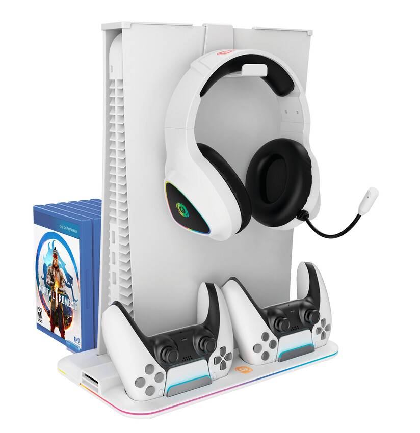 Ďalšou praktickou vychytávkou je nabíjanie ovládačov. Stojan CS-5 má priestor na nabíjanie dvoch ovládačov súčasne, čo znamená, že už nikdy nebudete musieť hľadať kábel na nabíjanie. Stojan ponúka aj úložný priestor na hry. Ide o bočný výsuvný zakladač, ktorý pojme až 12 hier, vďaka čomu máte všetky svoje obľúbené tituly vždy na dosah ruky.