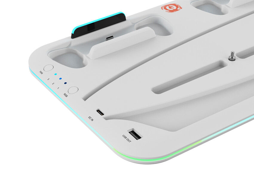 Ak hľadáte spoľahlivý a praktický doplnok pre PlayStation 5, Canyon CS-5 je rozhodne skvelou voľbou. Vo výbave stojana nechýba 14 štýlov RGB podsvietenia, regulácia rýchlostí ventilátora a funkcia nabíjania cez USB-C s LED indikátorom. Na stojane nájdete aj port USB-A, pomocou ktorého môžete nabíjať akékoľvek ďalšie príslušenstvo, napríklad aj to, ktoré si zavesíte na vešiaky dodávané spolu so stojanom.
