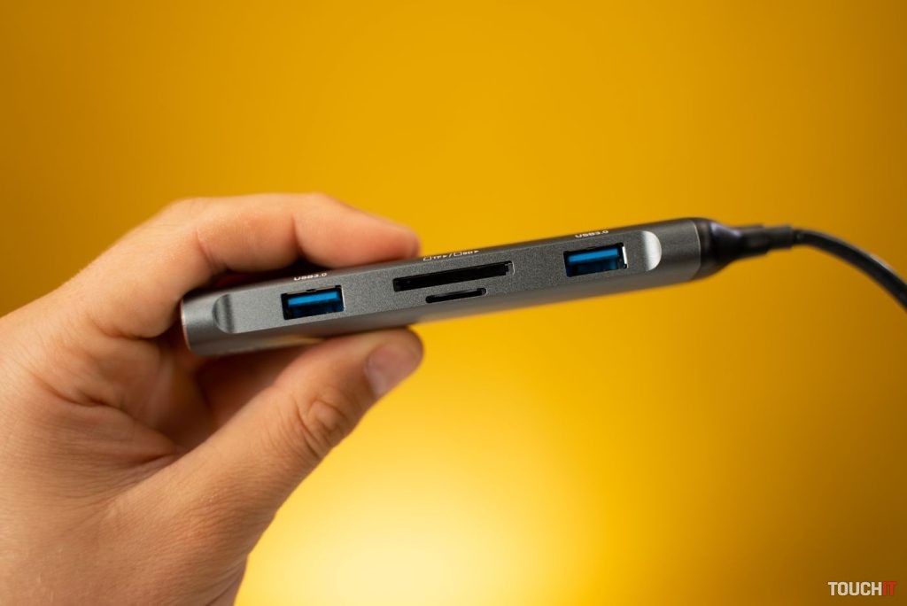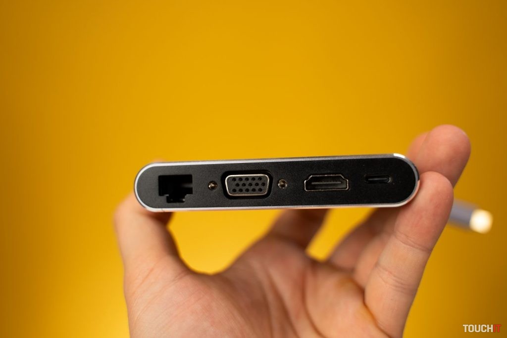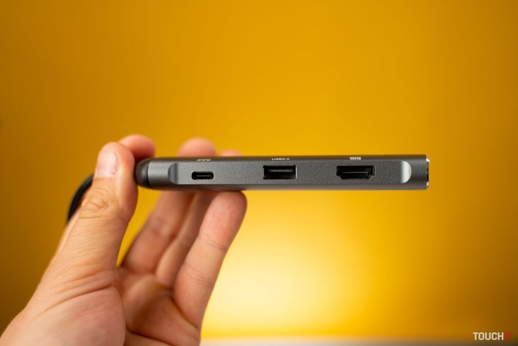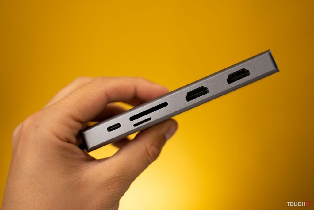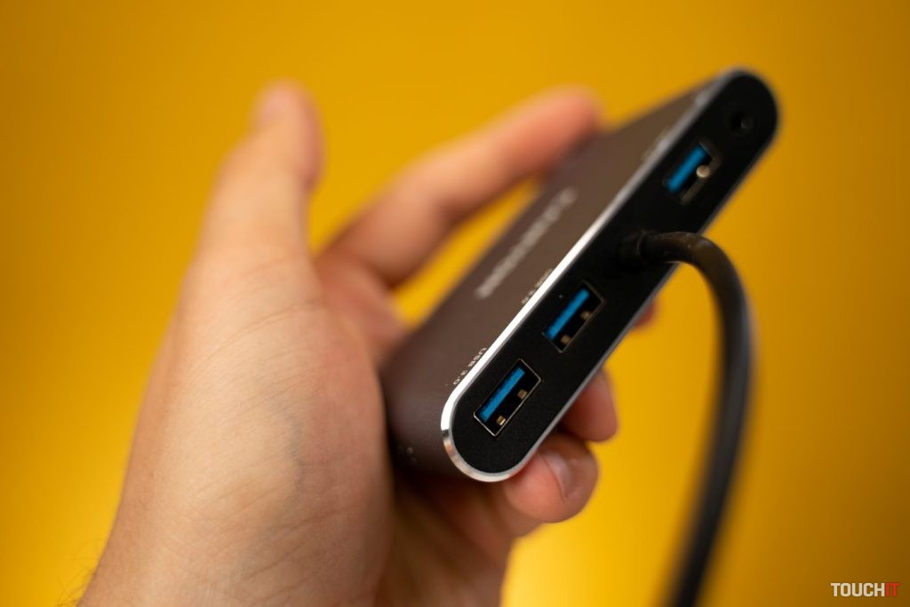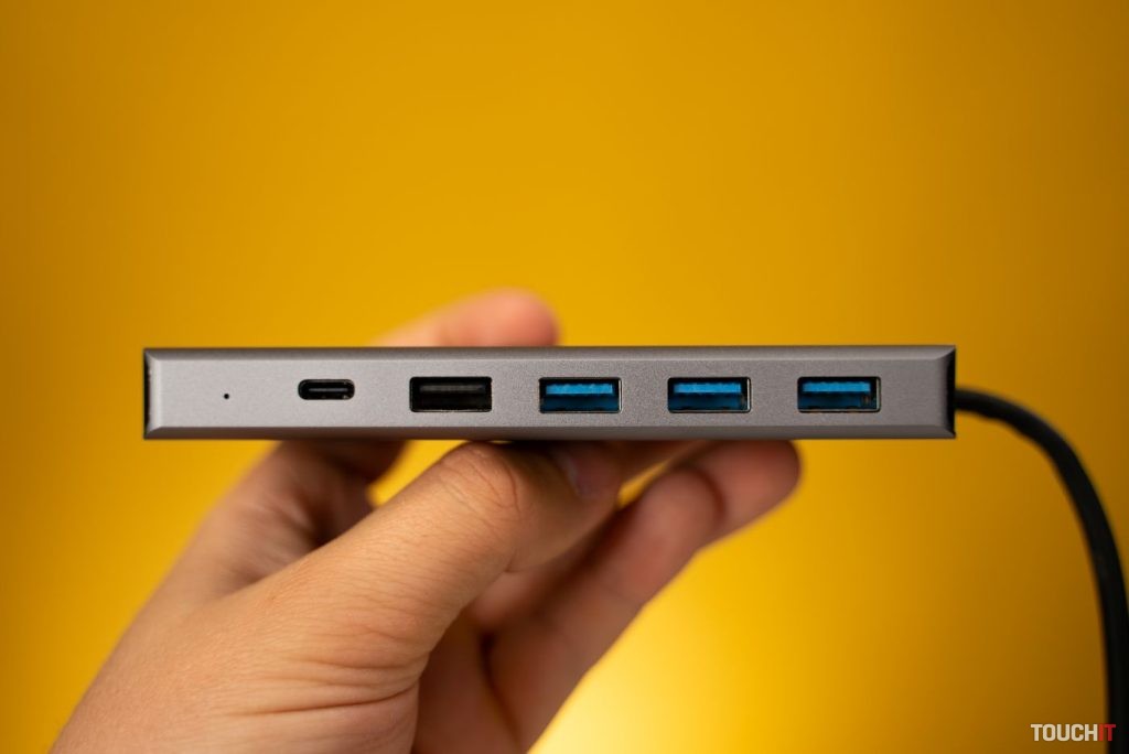 Hub ponúka väčšiu portovú výbavu a z hľadiska USB portov a tiež HDMI. Konkrétne sa na pravej hrane nachádzajú dva USB 3.0 porty s prenosovou rýchlosťou do 5 Gbps, jeden USB 2.0 port s prenosovou rýchlosťou 480 Mbps a takisto aj USB-C port, ktorý slúži na prenos dát.
