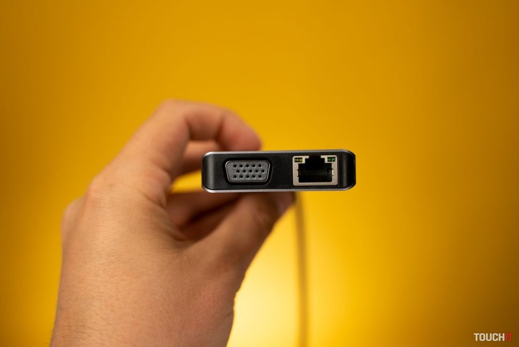 Tento USB-C hub ponúka celkovo trojicu USB 3.0 portov s prenosovými rýchlosťami do 5 Gbps. K dispozícii je 100 W napájací USB-C port a 1 Gbps ethernet. Nechýbajú ani HDMI a VGA porty a 3,5 mm jacky – ich parametre sú totožné s ostatnými USB-C hubmi v tomto článku.