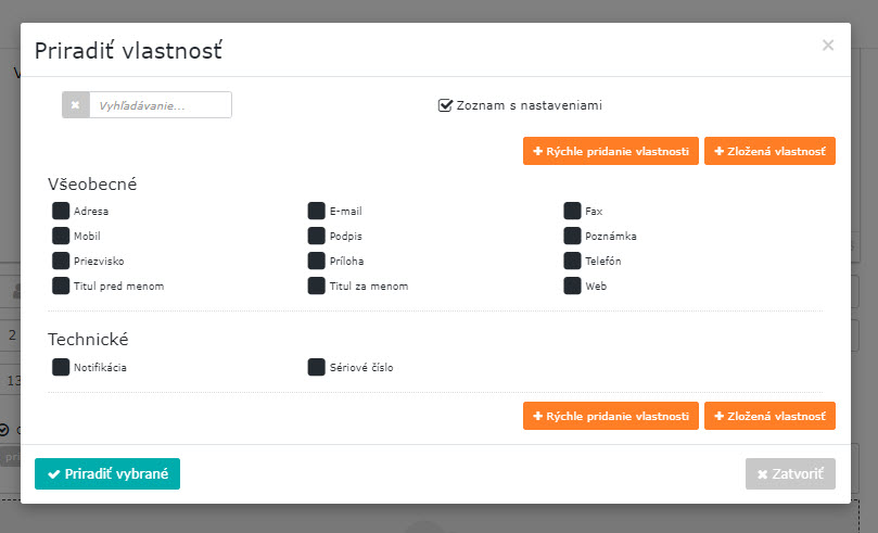 Ak potrebujete, dá sa modul Požiadaviek ďalej prispôsobovať pomocou možnosti Priradiť vlastnosť.