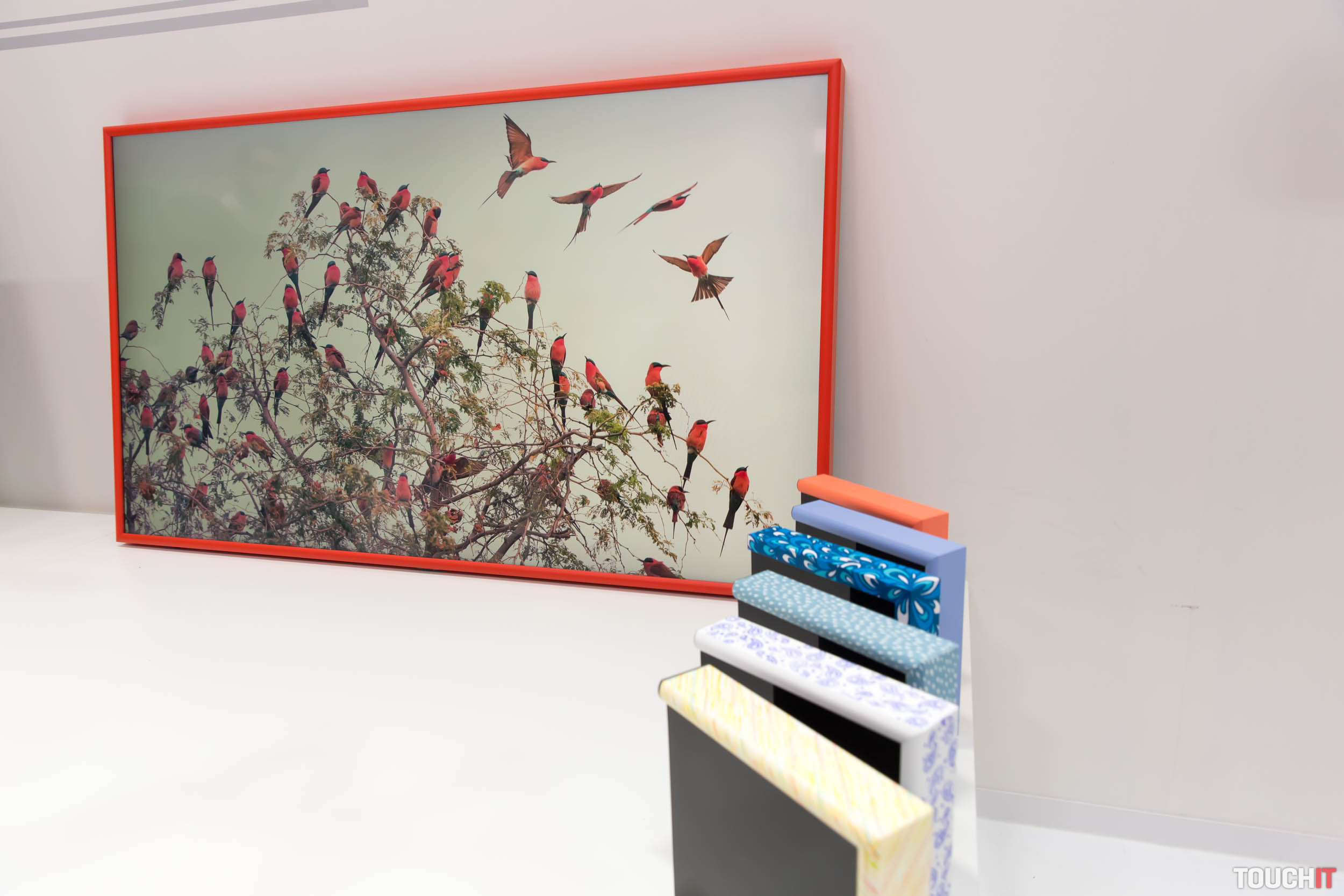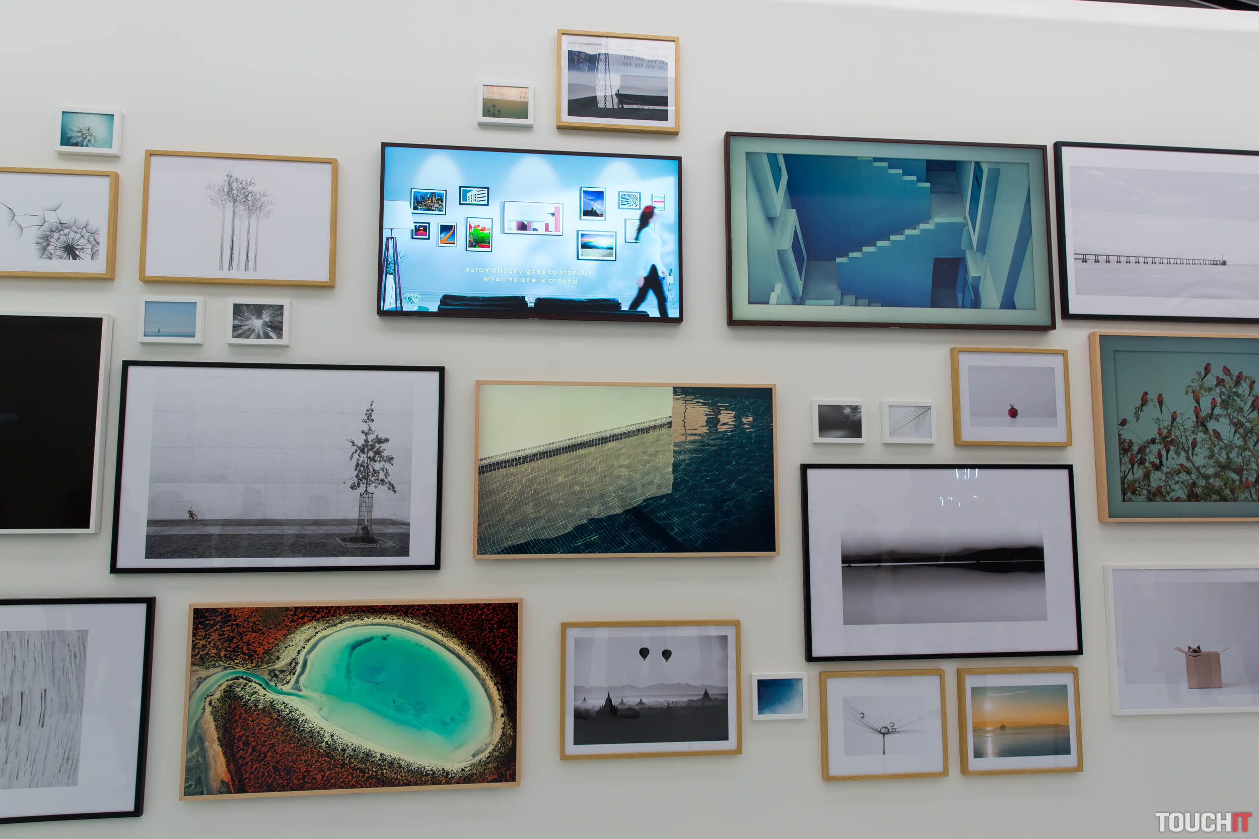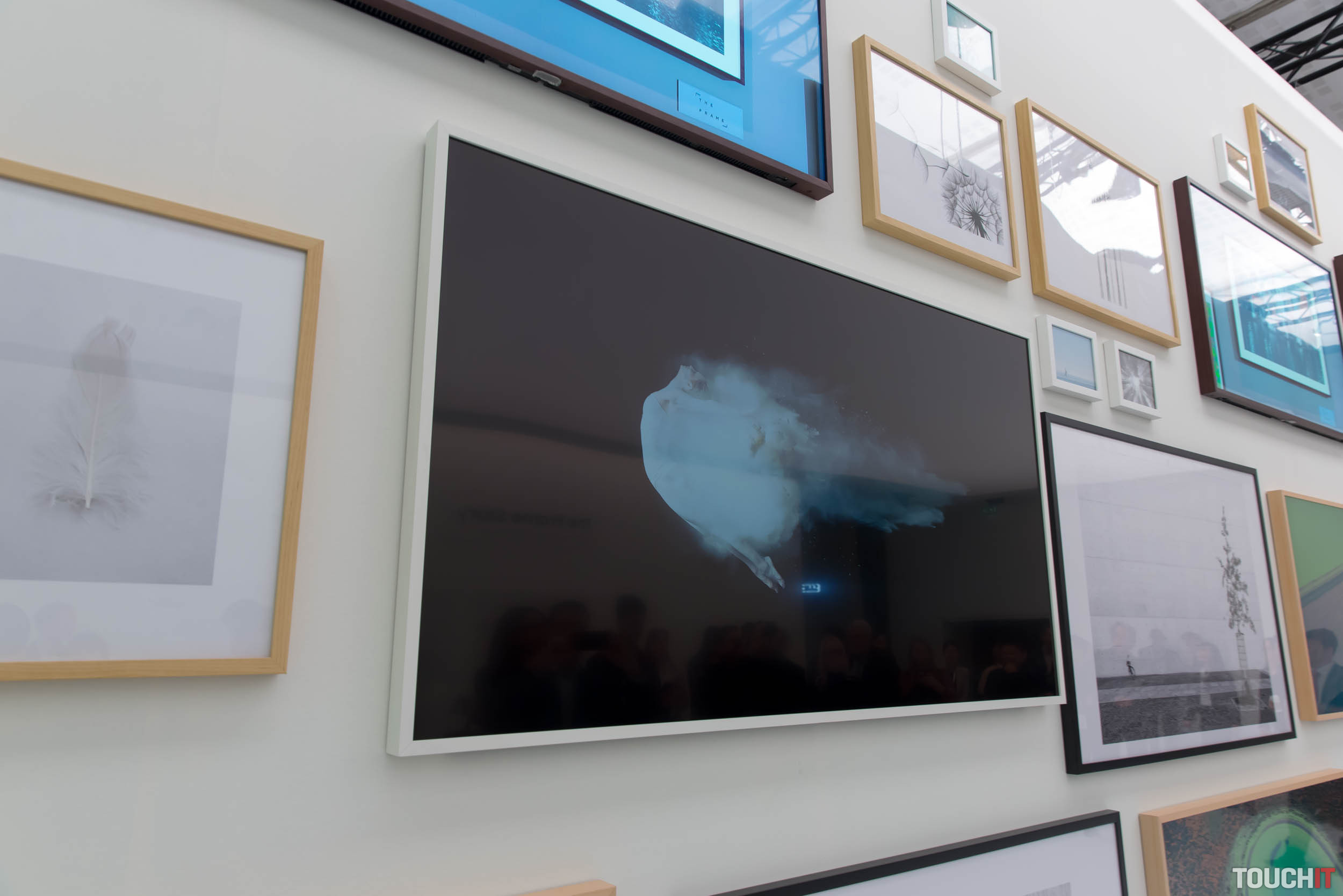 Úplnou novinkou sú totiž televízory, ktoré vyzerajú ako obraz. Presnejšie povedané, boli sme v galérii, kde medzi obrazmi bolo umiestnených 6 televízorov s uhlopriečkou 55-palcov a na prvý pohľad sa nedalo určiť, čo je klasický obraz a čo je televízor.