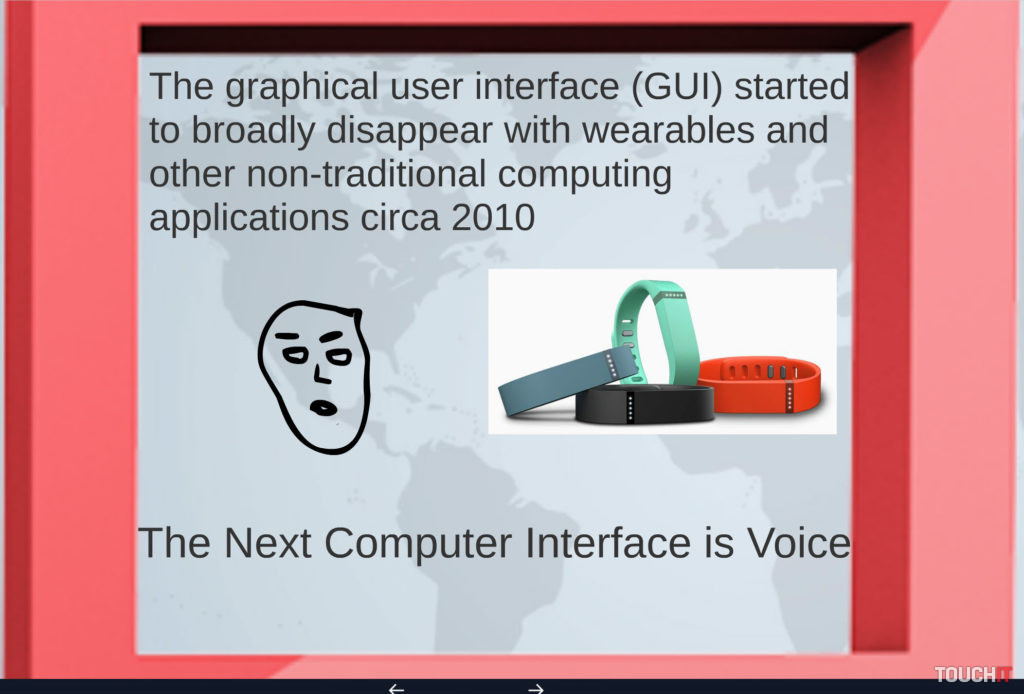 Do popredia sa dostáva hlas ako základný prostriedok na ovládanie zariadení. Konkrétne teda angličtina, zo slovenčinou bude ešte nejaký rok asi problém s plným pochopením IT zariadeniami.