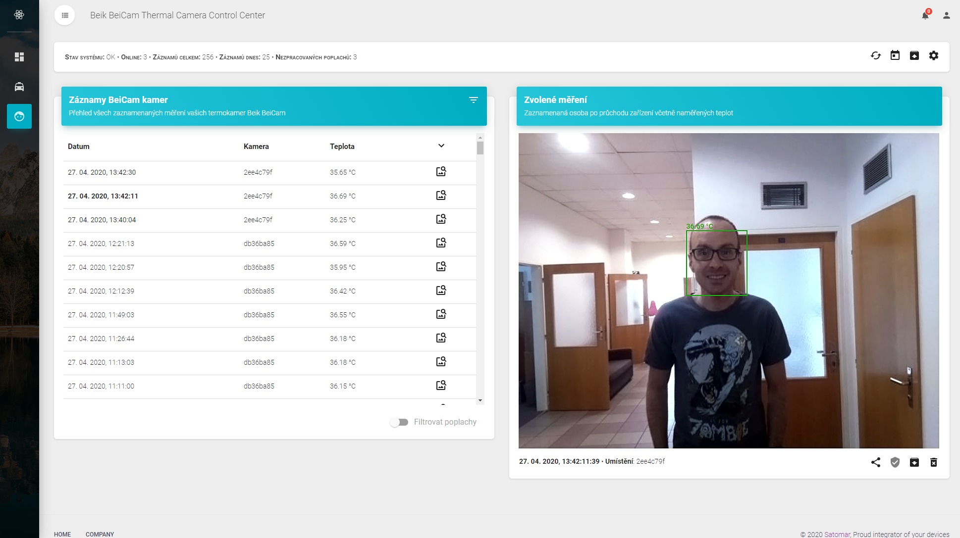 V nadväznosti na súčasnú koronavírosovú pandémiu dokončila česká firma Satomar vývoj vlastných termokamier BeiCam, ktoré okamžite a automaticky identifikujú osoby so zvýšenou teplotou.