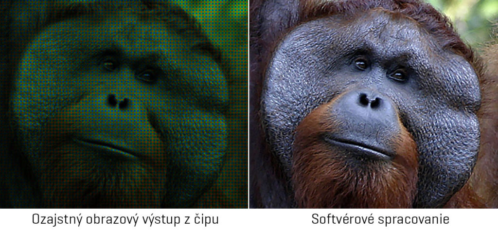 Ak by ste sa pozreli na fotku, ktorá vyjde rovno z CMOS senzora, zhrozili by ste sa. Je veľmi tmavá, plná chybných pixelov a má výrazný zelený nádych. Mágia, ktorou je akési „elektronické vyvolanie“ prichádza až nasledovne. Má ju na starosti obrazový procesor, označovaný aj skratkou ISP (Image Signal Processor). Ten je po optickej sústave a CMOS senzore tretím a posledným hlavným prvkom procesu vytvorenia fotografie alebo videa. Práve s pomocou neho sa z absurdne maličkého 5 mm kvádra kamery vyextrahuje veľmi pekná fotografia alebo video.