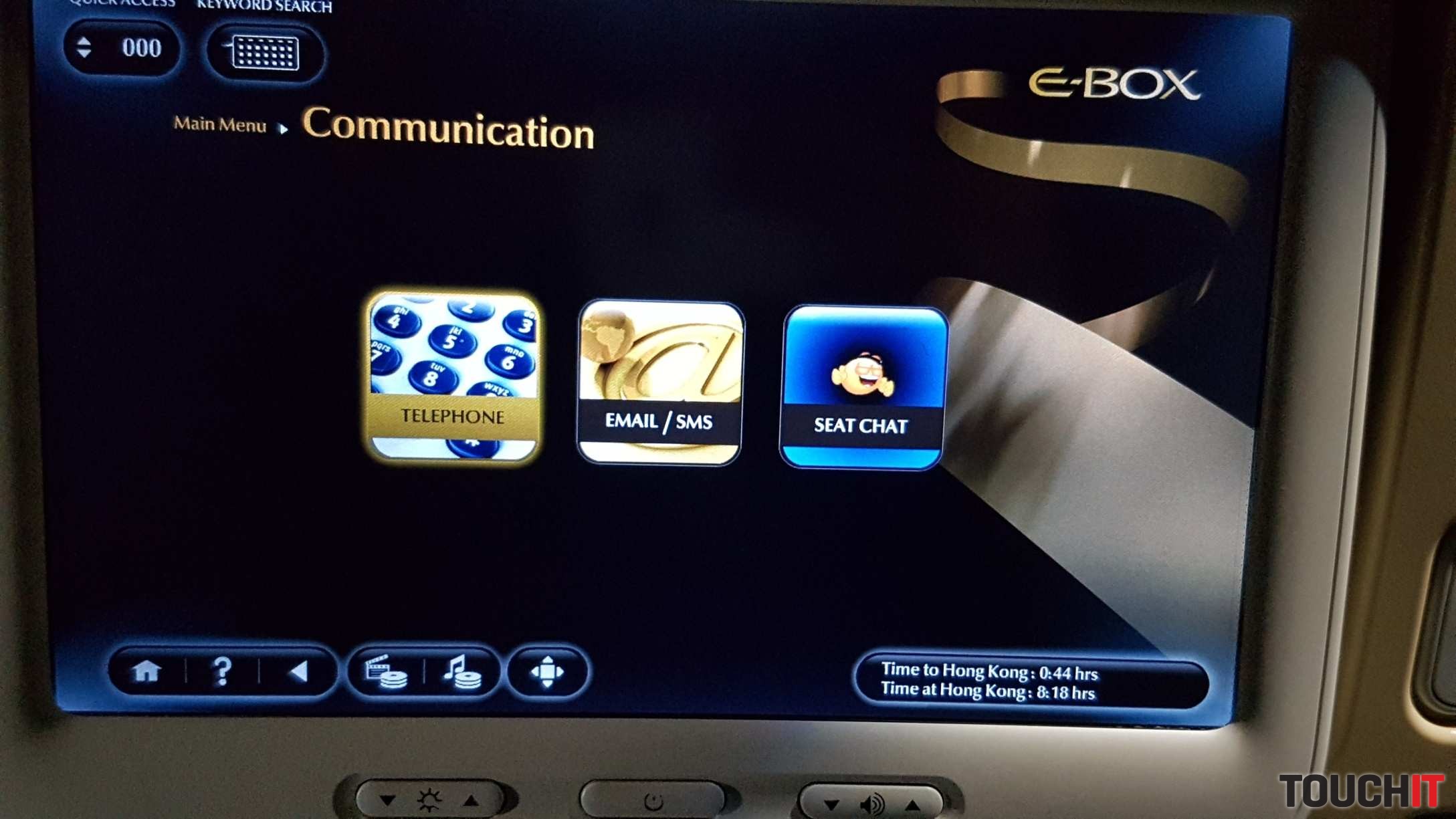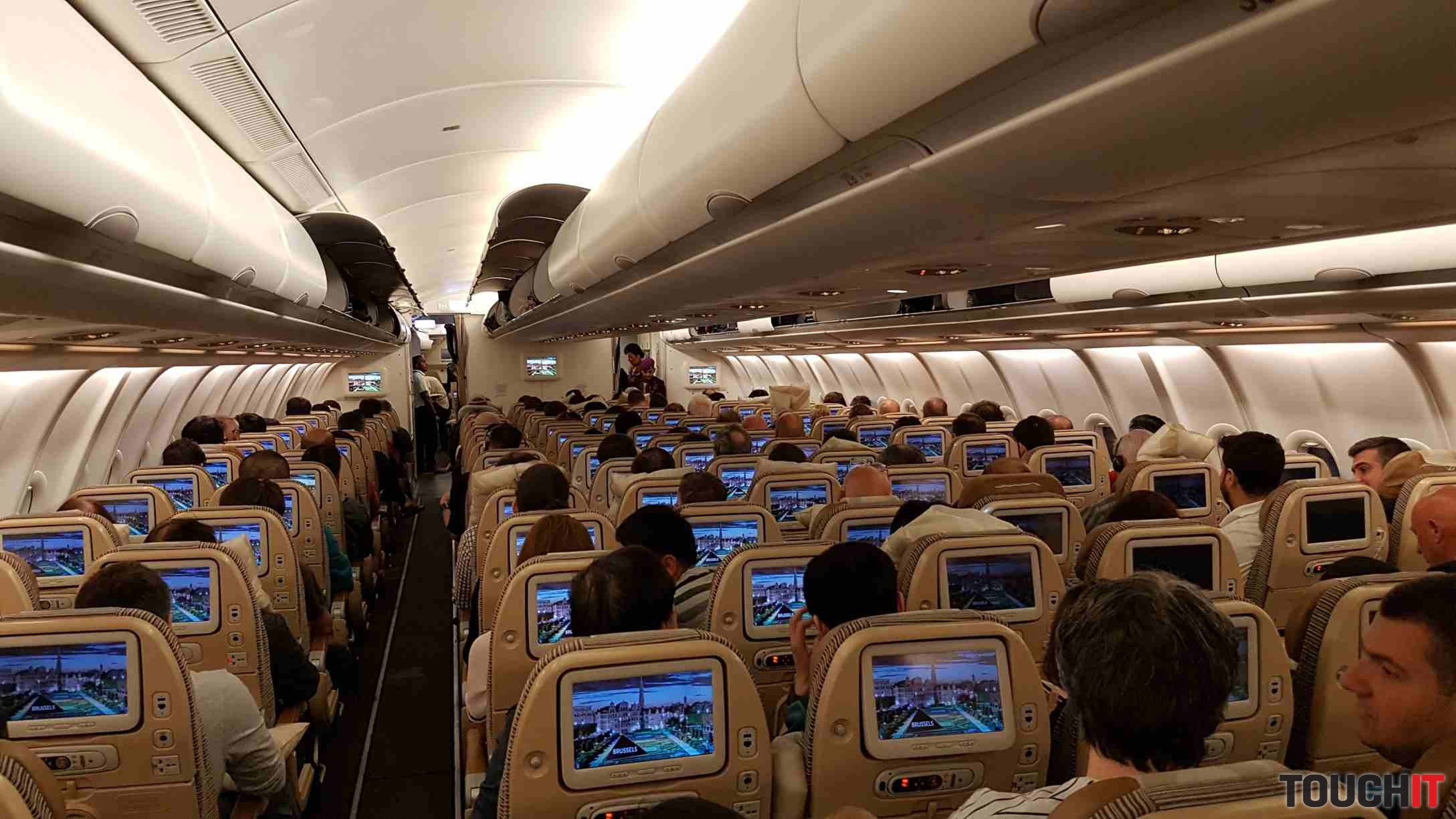 Odbavenie na letisku prebiehalo bez problémov. Síce tam bola v sobotu ráno poriadna plnka, ale dopravca Etihad mal úplne prázdno. Už viem ako sa cítia cestujúci v biznis triede. Prvý let bol do Abu Dhabí a bol výborný. Celú trojsedačku som mal len pre seba a ešte aj dostatok priestoru na nohy. To už bolo veľmi podozrivé a potvrdilo sa mi to pri druhom lete. Airbus A330-200, ktorý má dve uličky so sedadlami 2-4-2 bol úplne plný. Nechápem, kam všetci v sobotu cestujú. 🙂 No a nielen že som nemal pre seba celú štvorsedačku, ale aj na nohy bolo o trochu menej miesta. A to po piatich hodinách letu, dvoch čakaniach na prestup a ďalších 6,5 hodinách cítite. Zábavný systém sa mi páčil, ale opäť – nosím si vlastný obsah. Inak výborná bola možnosť zaplatiť si telefonovanie na pevninu, internet alebo možnosť posielať SMS či emaily. Toto sa mi už páčilo viac, aj keď som to nevyužil. Vidím v tom ale väčší zmysel, hoci pri tak dlhom lete by sa dal pozrieť aj nejaký film. A dobrá správa, ak poletíte Etihadom, nemusíte príliš dbať na to, aby ste sedeli spolu. Zadarmo si môžete volať cez telefón alebo chatovať. Stačí vedieť číslo sedadla spolucestujúceho.