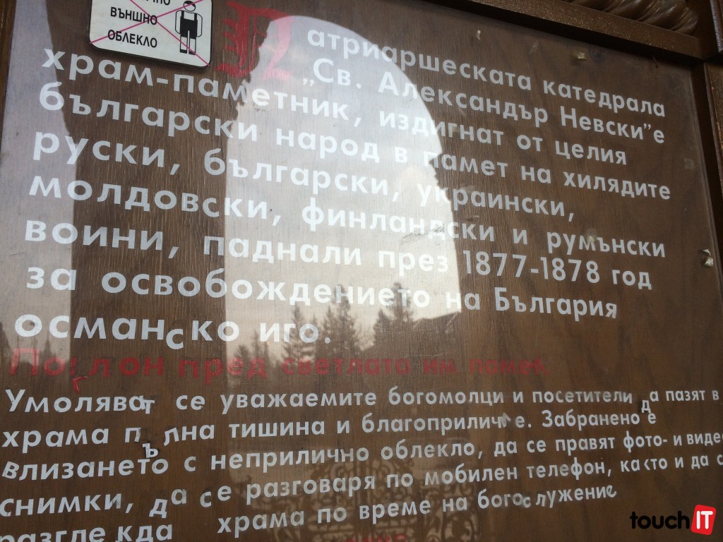 Drvivá väčšina Bulharov sú pravoslávni veriaci, v tomto je bulharský národ jednoliaty. Chrám je impozantný zvonku aj zvnútra, voľne dostupný a môžete tak zapáliť sviečku spolu s ďalšími modliacimi sa. Sviečky možno horia aj práve za tých 200 000 ruských vojakov, ktorí oslobodili Bulharsko od nadvlády Turecka: