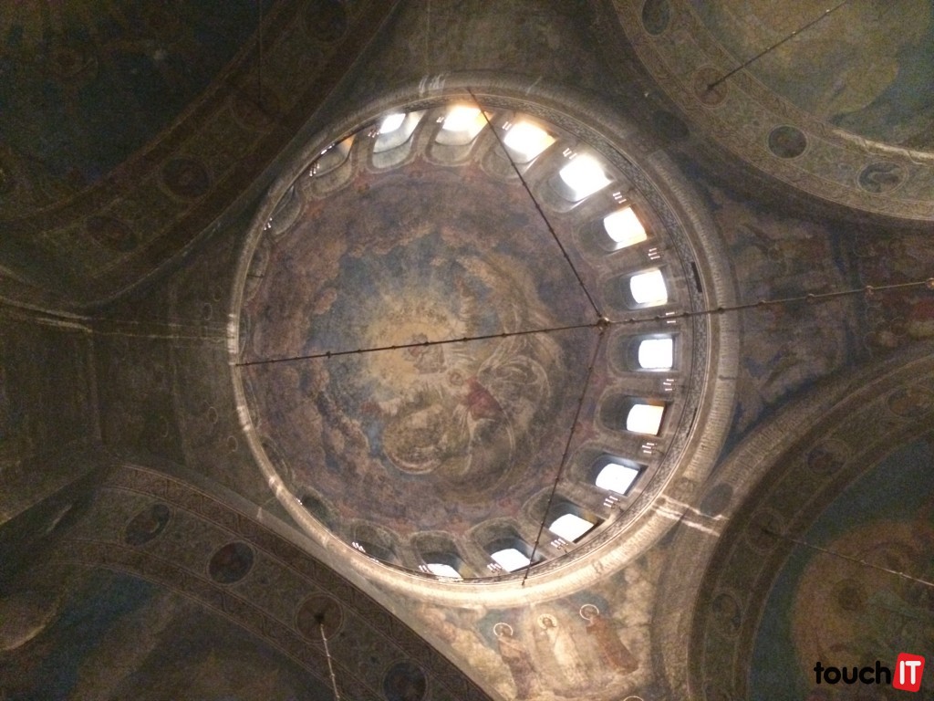 Majestátna vnútorna kupola (zvonka pokrytá plátkovým zlatom) je posiata maľbami, na ktoré sa nedá nepozrieť: