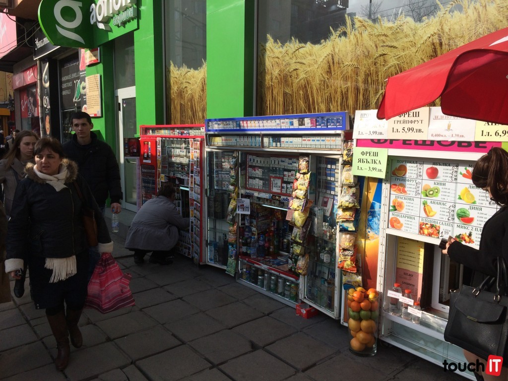 Skôr menšie kaviarničky a bistrá, ale kvôli typickým bulharským jedlám musíte zájsť o niečo hlbšie do mesta. Bežne dostanete na ulici pizzu, pizzu a možno ešte hot-dog či kebap. Za to si však na každom rohu môžete kúpiť fľašu čerstvo vylisovaného džúsu za menej ako 2 eurá. Sem-tam sa budete musieť prikrčiť, niektoré obchodíky vychádzajú zo suterénu: