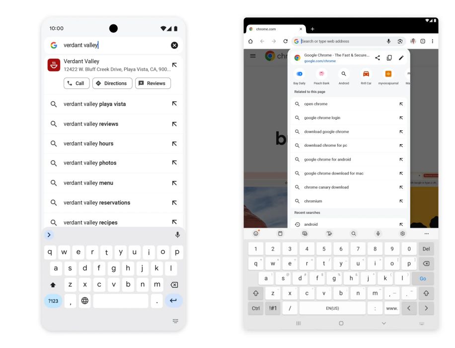 Google zlepšil zobrazenie panela s adresou v prípade aplikácií pre Android tablety a iPady. Podľa jeho slov je nová verzia prispôsobená tomu, aby využila výhody väčších obrazoviek. V praxi to znamená, že pri používaní adresného riadka bude webová stránka vždy viditeľná pod rozbaľovacím zoznamom, ak by ste sa rozhodli vrátiť sa na ňu.