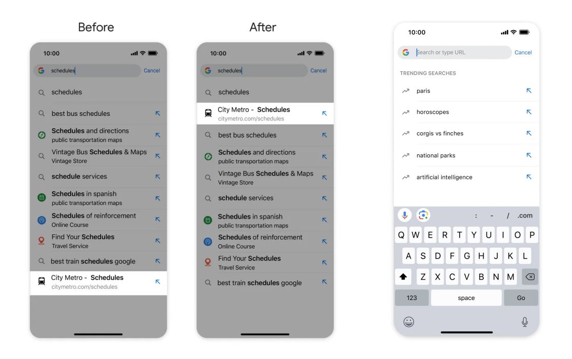 Vďaka tejto novinke sa bude daná stránka zobrazovať vyššie v návrhoch vyhľadávania vždy, keď budete hľadať „cestovné poriadky“. V minulosti by sa zobrazovala na nižších pozíciách.
