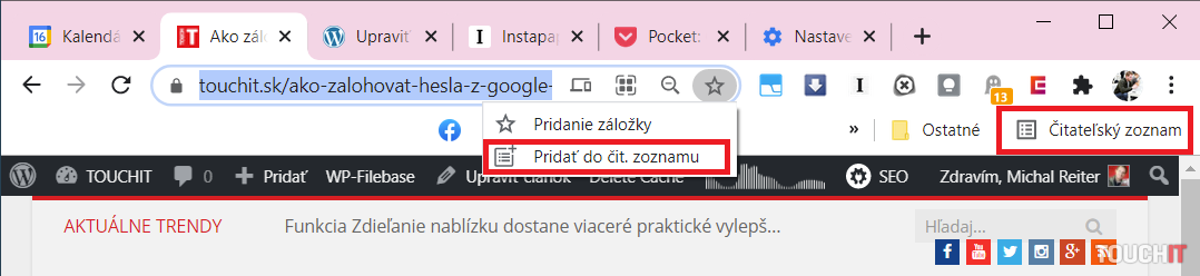 Tlačidlo sa volá Čitateľský zoznam a funguje trochu inak ako pridávanie záložiek. Vlastne ide o oddelený zoznam toho, na čo sa chcete ešte pozrieť, prečítať si alebo vidieť na YouTube, zároveň si z toho ale nechcete robiť záložku. To máte pravdepodobne vyhradené na stránky, ku ktorým sa chcete vracať častejšie. Nová funkcia je určená skôr na niečo, čo vás zaujme a čo si chcete prečítať.