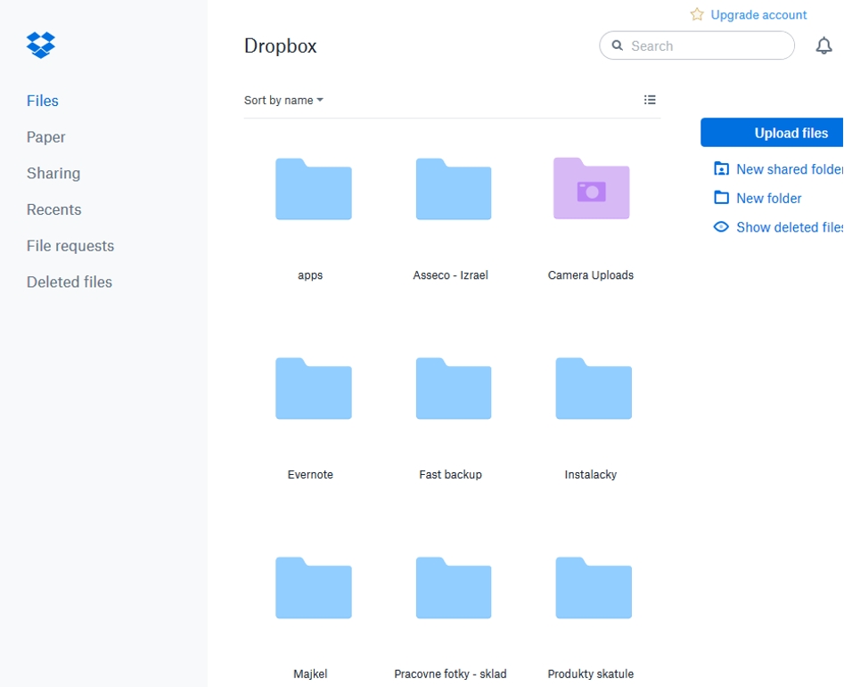 To je služba, ktorej aplikáciu inštalujeme na telefón aj nový počítač medzi prvými. Vieme, že fotky nám prenesú aj ostatné aplikácie v teste. No je to o zvyku a máme radi, keď fotografie odfotené zo smartfónu putujú na Dropbox. Máme tak lepší prehľad. Dropbox bola donedávna len služba, ktorá umožňovala ukladanie súborov. Pred pár mesiacmi sa pridala služba Paper, ktorá je akýmsi textovým editorom na poznámky a spoluprácu s ostatnými v reálnom čase. Nie je to úplne textový editor, ale je to užitočná služba navyše. Webové rozhranie je príjemné a pekné, no nie je tu označovanie súborov myšou ako pri Disku a OneDrive. Tiež tu nie je podpora pravého tlačidla myši. Ak kliknete pravým tlačidlom na súbor alebo adresár, zobrazí sa kontextové menu webového prehliadača. Ak označíte aspoň jeden objekt cez zaškrtávacie políčko vedľa neho, potom už môžete myšou klikať na objekty a klávesmi Ctrl alebo Shift označovať. Inak treba vždy využiť bočné menu alebo kontextové menu dostupné cez tri bodky, ktoré sa zobrazujú pri objektoch. Aplikácia pre počítač synchronizuje dáta rovnako rýchlo ako Disk alebo OneDrive. Ak nastane nejaká zmena a súbory z iných zariadení sú prenesené do cloudu služby, o sekundu-dve sa začne prenos dát. Nechýba tu zdieľanie súborov, a to medzi používateľmi Dropboxu alebo ostatnými cez špeciálny link. Všetky zdieľané adresáre majú svoju ikonu na webe ako aj v zobrazení Prieskumníka priamo vo Windows. Tiež je vidno v samostatnom zozname, ktoré dáta zdieľate a môžete linky vypnúť. Odstránené súbory sa tu zobrazujú na jednom mieste. Zmazané dáta sa tiež dajú zobraziť priamo v aktuálne zobrazenom adresári. Stačí zapnúť špeciálnu voľbu. Sivou farbou budú vymazané dáta pripravené na obnovenie. Môžete sa vrátiť k rôznym verziám, pridávať komentáre, ale nie je tu napríklad farebné odlíšenie priečinkov.