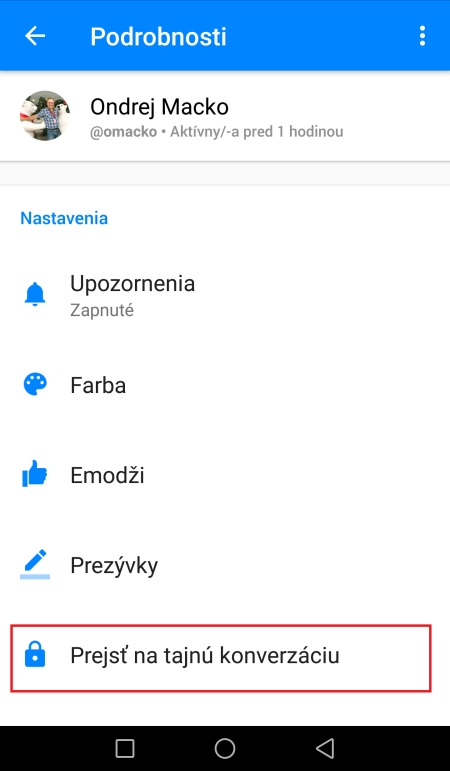 Malé odbočenie k službám na chatovanie. Tie v poslednom čase začali ponúkať tzv. end-to-end šifrovanie. To znamená, že bezpečné spojenie a výmena kľúčov je sieťovými protokolmi vyjednaná len medzi dvomi komunikujúcimi zariadeniami. Aj Messenger od Facebooku používa šifrovanie. To znamená, že nikto si nebude môcť vaše správy prečítať. Napríklad ak vo vašej firme používate nejaký vlastný server ako medzistupeň namiesto obyčajného routera. To, že ste na Messengeri a niečo cez neho posielate, je vidno. To nie je tajná informácia. Čo posielate? To už vidno nie je. Avšak takisto aj Facebook má uložené vaše šifrovacie kľúče, a tak v prípade potreby (napríklad príkazu súdu) bude vedieť dáta poskytnúť. Teraz prichádza na rad nový spôsob prenosu dát a je ním spomínané end-to-end šifrovanie. Aj Messenger od FB ho už má implementovaný. Preto v menu tohto messengera môžete zvoliť, že chcete poslať súkromnú správu. Voľbu nájdete pri každom kontakte. Už z princípu je jasné, že toto nefunguje pri konverzáciách s viacerými používateľmi – teda vo facebookovej reči v Skupinách. Tieto správy ale nebudete môcť zobraziť na inom zariadení. Sú dostupné len na tom telefóne s Androidom alebo počítači, na ktorom komunikácia prebiehala.