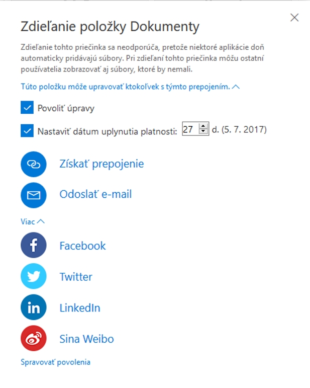 Zdieľanie súborov áno áno áno, aj časové