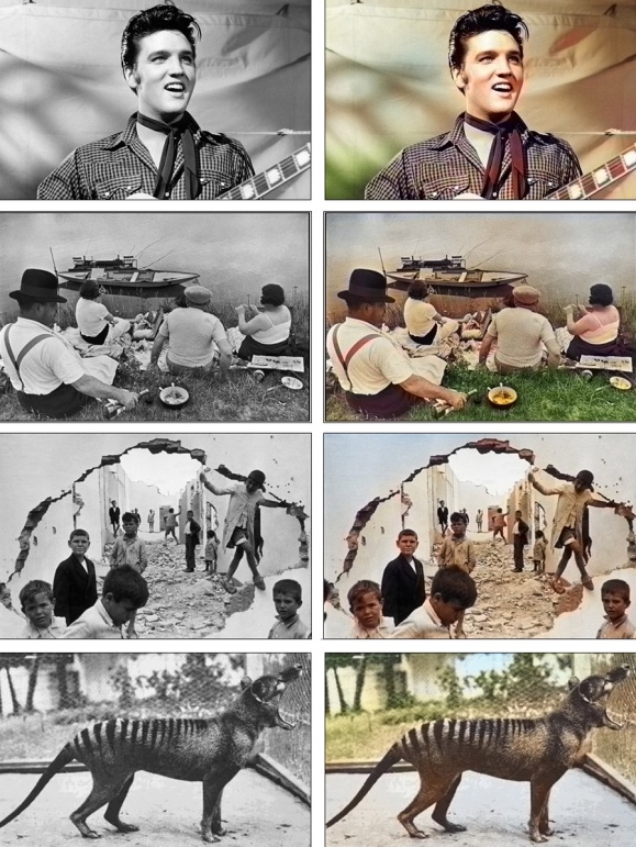 Kolorizácii fotografií sa venuje mnoho ľudí. Ide o pomerne prácnu úlohu (ak je v scéne množstvo detailov), pri ktorej na základe vašich znalostí odhadnete farbu scény a obrázok postupne upravujete v rastrovom editore, ako je napríklad Photoshop. Kým u niektorých farieb ste si si istý a viete, že tráva je zelená a obloha modrá, u iných musíte už tipovať, pričom je len na vás, akú farbu bude mať napríklad oblečenie ľudí. Pravdaže, vychádzate z okolností a viete, že kabáty ľudí na divokom západe môžu byť hnedé či čierne, ale rozhodne nebudú fialové. V mnohých prípadoch však nemáte prakticky žiadnu pomôcku a musíte si farbu zvoliť tak, ako vám pripadá prirodzené (ak napríklad ide o čiernobielu fotku maľovaného veľkonočného vajíčka).