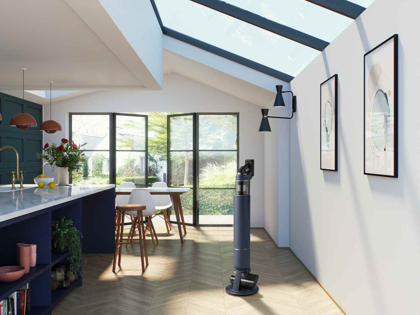 Vysávač Bespoke Jet je vybavený aj dokovacou stanicou All-in-One Clean Station. Vďaka unikátnej technológii Samsung Air Pulse dokáže po pripojení vysávača automaticky vyprázdniť jeho nádobu na nečistoty bez toho, aby z nej unikali jemné prachové častice. Stanica zároveň aj automaticky nabíja batériu vysávača.