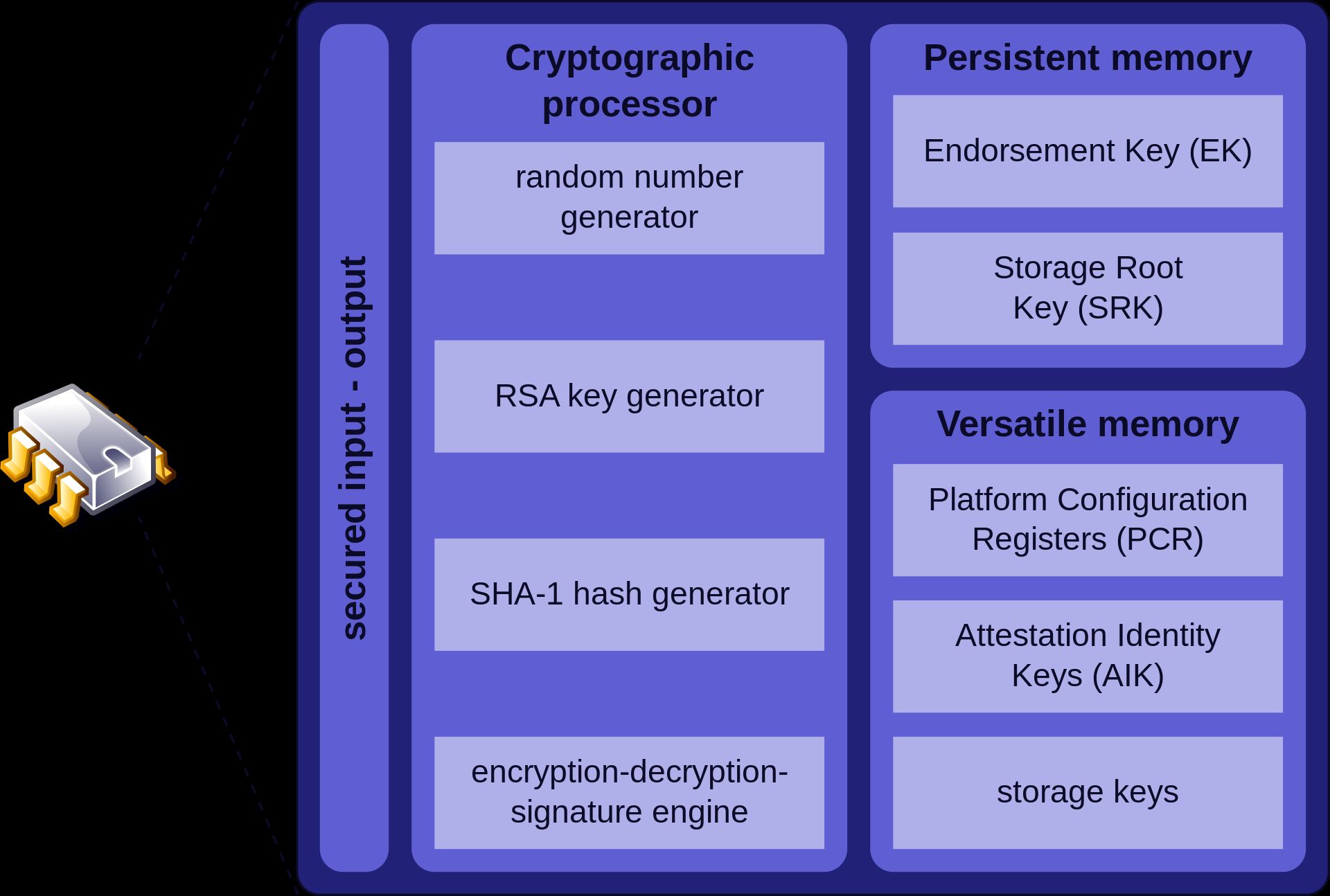 Zloženie TPM čipu. Zdroj: Wikipedia