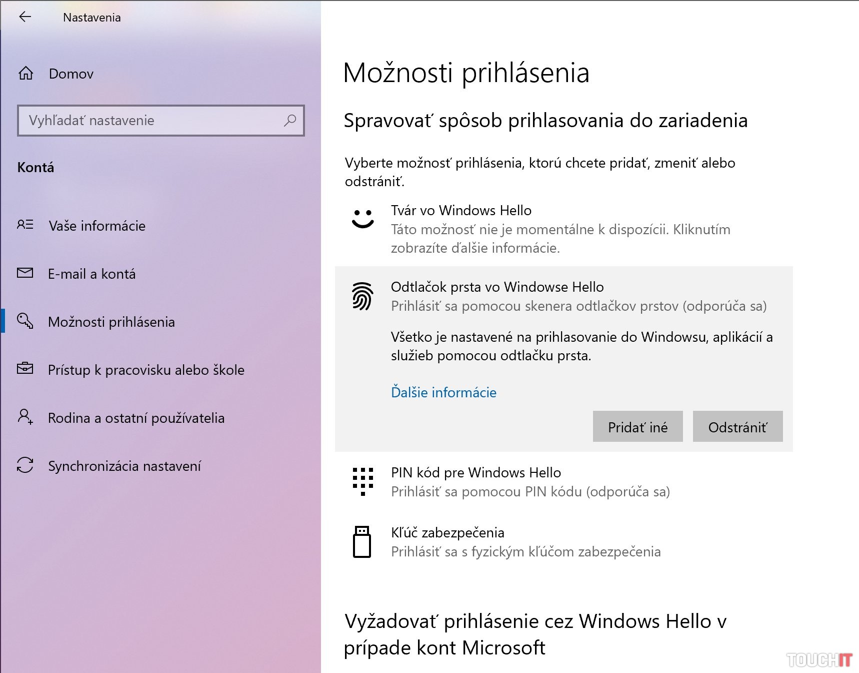 Toto celé sa volá Windows Hello. Je to akýsi zjednotený názov na systém prihlasovania a možností ochrany vášho konta. Nie všetky možnosti sú dostupné, spravidla teda hovoríme o možnosti rozpoznávania tvárou alebo odtlačkom prsta. Všetky ostatné dostupné budú.