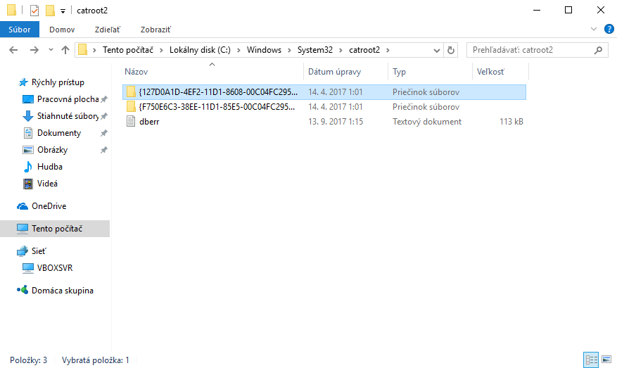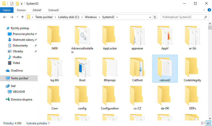 Priečinok catroot2 v rámci systémových položiek Windows/System32