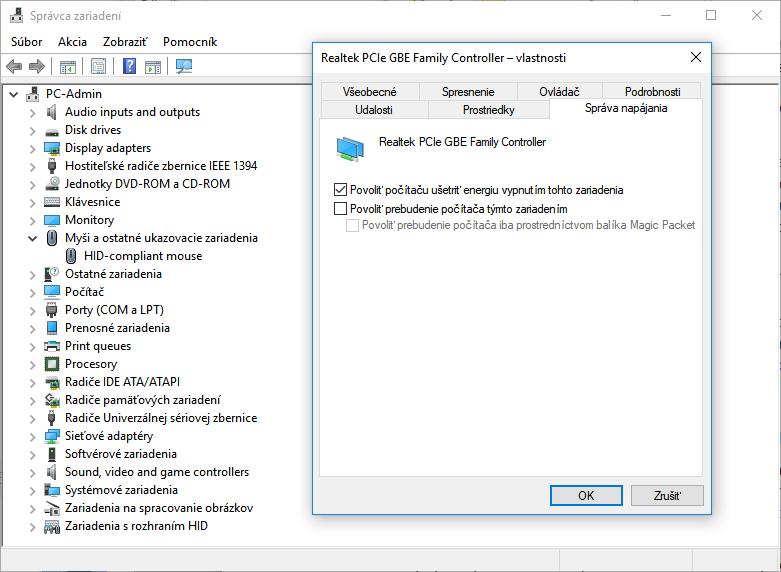 Obvykle vo výpise nájdete myš/touchpad, klávesnicu a sieťový čip, avšak môže ísť aj o ďalšie zariadenia. Pre odobratie týchto oprávnení otvorte Správcu zariadení (napríklad opäť pravým kliknutím myši na menu Štart) a jednotlivý hardvér nájdite v jeho kategóriách. Následne kliknite napríklad na Sieťový čip pravým tlačidlom myši a vyberte Vlastnosti. V otvorenom okne na karte Správa napájania pritom zrušte zaškrtnutie políčka Povoliť prebudenie počítača týmto zariadením. Takto môžete vypnúť možnosť prebúdzania od všetkého hardvéru, ktorý sa objavil vo výpise po zadaní príkazu wake armed. Nezabudnite, že notebooky majú obvykle dva sieťové čipy, pričom jeden obsluhuje káblové a druhý bezdrôtové pripojenie.