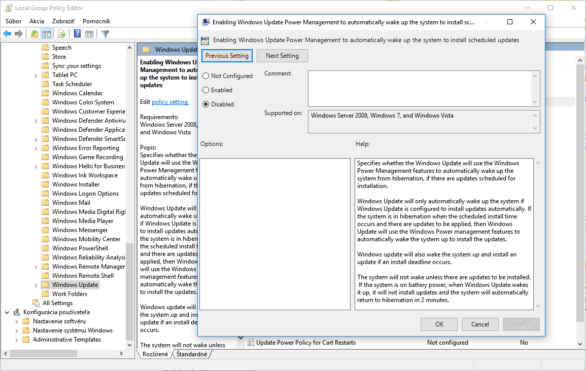 Ak teda narazíte na to, že počítač vám prebúdza a späť neuspáva práve UpdateOrchestrator, je vhodné ho odstrihnúť. Ak používate profesionálnu verziu systému Windows 10, najvhodnejším riešením je nastavenie manuálnych aktualizácií a zakázanie prebúdzania počítača kvôli ich kontrole. Používa sa na to nástroj Local Group Policy Editor, ktorý spustíte zadaním gpedit.msc do integrovaného vyhľadávania menu Štart). Stačí nakonfigurovať položky vo vetve Konfigurácia počítača/Administrative Templates/Windows Components/Windows Update. Konkrétne ide o položky Enabling Windows Update Power Management to automatically wake up the system to install scheduled updates (nastaviť na Disabled) a Configure Automatic Updates (nastaviť na Enabled a možnosť 2 – Notify for download and auto install). Tento krok UpdateOrchestrator a jeho Reboot úlohu natrvalo vyradí.