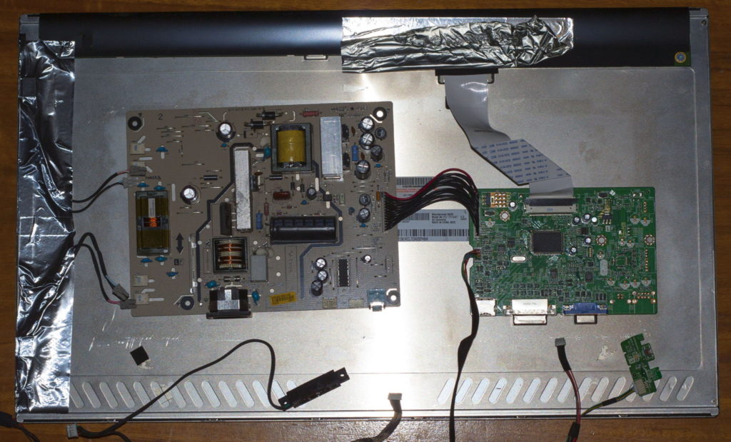 Napájacia a kontrolná elektronika v útrobách monitora