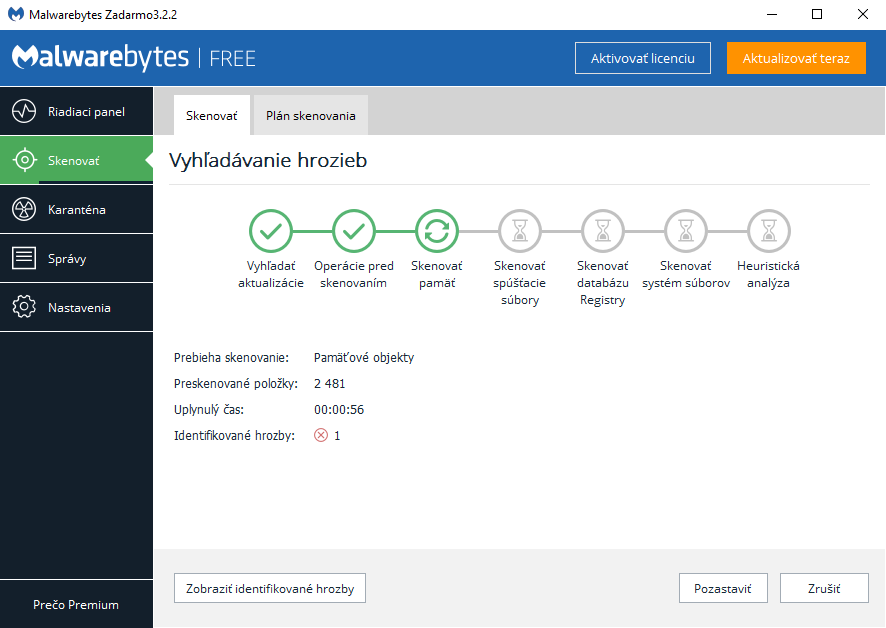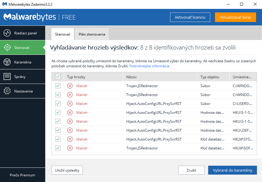 Následne kliknite na sekciu Skenovať a tlačidlom spustite skenovanie. Program si pred tým automaticky stiahne aktualizáciu databázy a preskenuje operačnú pamäť aj priečinky systémového disku. Po skončení testu nájdený škodlivý softvér kliknutím odstráňte. Program na svojom počítači môžete ponechať a napríklad raz za mesiac alebo štvrťrok spustiť skenovanie opäť. Ide o cennú sekundárnu kontrolu k vášmu štandardnému antivírusu.