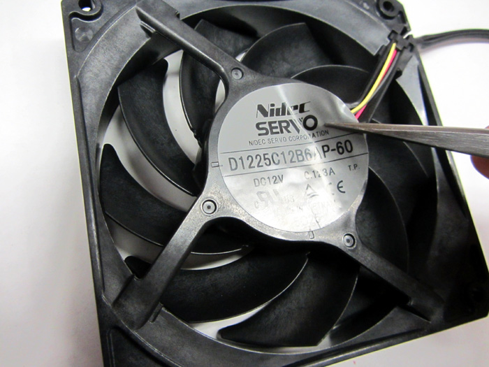 Omnoho vhodnejšie je premazanie vykonať správne a čisto tak, že ventilátor odmontujete a otočíte ho naruby. Uvidíte tak kabeláž, smerujúcu do jeho centra a obvykle aj nálepku. Ak nálepku výrobcu odlepíte, odhalí sa v centre malá dierka, ktorá vám odkryje rotačnú os.
