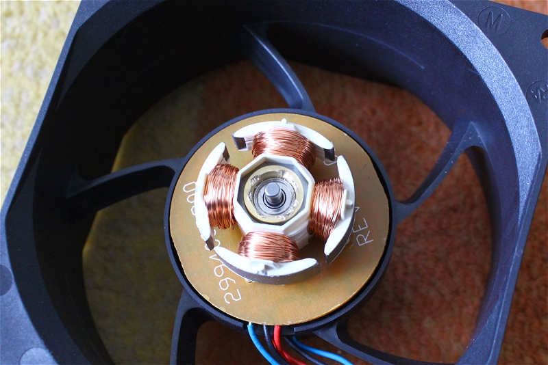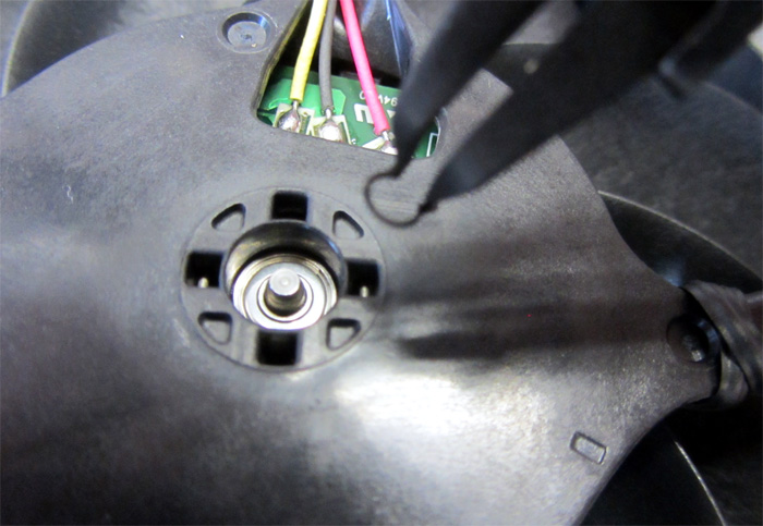 Premazanie ložiska a rotačnej osi ventilátoru nie je komplikovaná záležitosť a zvládne ho zrejme každý. Potrebujete sa len k nemu dostať. Trochu barbarsky sa dá centrum ventilátora mierne odtlačiť a následne pod neho streknúť olej v spreji. Ak je streknutie poriadne, olej sa teoreticky dostane aj k osi a ložisku, avšak takýmto postupom zbytočne kompletne zamastíte jeho cievky (elektromagnet) a ovládaciu elektroniku, umiestenú práve pod stredovým kruhovým krytom.