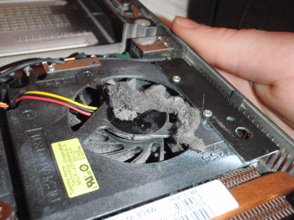 Každopádne, zvýšenie hluku ventilátora po pár rokoch prevádzky notebooku je normálny a očakávateľný jav. Príčiny sú dve, pričom sa vzájomne dopĺňajú a umocňujú. Prvou je, že dovnútra ložiska chladiča sa dostávajú čiastočky prachu, ktoré sa v ňom postupne hromadia a robia jeho pohyb ťažším. Výsledkom je, že chladič môže začať nezdravo bzučať krátko po tom, ako počítač zapnete (častejšie u zdrojov desktopov), a to až do doby, kým sa materiál nezohreje a trochu neroztiahne. Takisto ale môže začať bzučať v momente ako prejde z pomalých na vyššie otáčky, čo je častejšie pri notebookoch a desktopových CPU chladičoch a grafických kartách. Druhou príčinou je, že notebook alebo iné počítače často nemajú účinné prachové filtre pri nasávaní vzduchu z okolia. Výsledkom toho je to, že sa prach dostáva dnu a pomaly sa usadzuje na rebrách pasívneho chladiča (cez ktoré aktívny ventilátor ženie vzduch von). Sprvu ide len o jemnú vrstvu, ako na bežných veciach v domácnosti, ale vzhľadom na neustály tlak rýchleho vzduchu sa vrstvička komprimuje a pri svojom raste začne postupne vytvárať silné chuchvalce, pripomínajúce vatu.