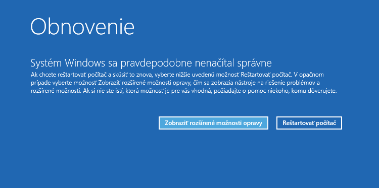 Otázka čitateľa:Rád by som sa opýtal čo robiť v situácii, keď sa po nainštalovaní kumulatívnej aktualizácie systém už nechce viac spustiť. Viackrát sa mi stalo, že pri nábehu vybehne len chybové hlásenie a potom je koniec, alebo sa systém stále dokola reštartuje a nikdy sa nespustí. Je nejaký spôsob ako sa dostať dovnútra a spraviť obnovenie systému?