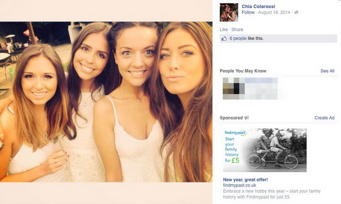 Tieto mená však dievčatám nepatrili. V skutočnosti patrili falošným zoznamovacím účtom, umiestneným na rôznych sociálnych sieťach, a to už od roku 2007. Počas nasledujúcich rokov sa jej a jej priateľke stali podobné stretnutia nespočetne krát. Často krát sa dotieravých osôb zbavili až v momente, ako im ukázali svoje doklady a rozčarovaní nápadníci a priatelia zistili, že „Colarossi“, „Rose“ a iné mená im nepatrili. Ellie sa snažila celej veci prísť na kĺb a dané mená začala vyhľadávať na internete. Prekvapene pri tom zistila, že na Facebooku, Twitteri, Instagrame a ma rôznych on-line zoznamkách existuje viac ako 60 profilov s jej fotografiami. Nešlo pri tom len o nejaký jeden konkrétny snímok. Profily boli plné jej osobných fotografií za posledných niekoľko rokov, ktoré nahrávala na svoj Facebook účet.