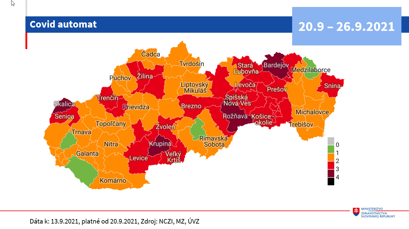 Ako je z covid mapy zrejmé, situácia sa na Slovensku zhoršila až v 31 okresoch. Zelené okresy sú už iba 4, Bratislava sa preklopí do žltej fary, 27 okresov bude v červenej farbe a 4 budú bordové. Najviac to pocítia obyvatelia Skalice, Krupiny, Rožňavy a Bardejova. Práve v týchto okresoch je zaočkovanosť pomerne nízka, v Bardejove sa pritom vykonával väčší počet hromadných akcií (svadby, oslavy).